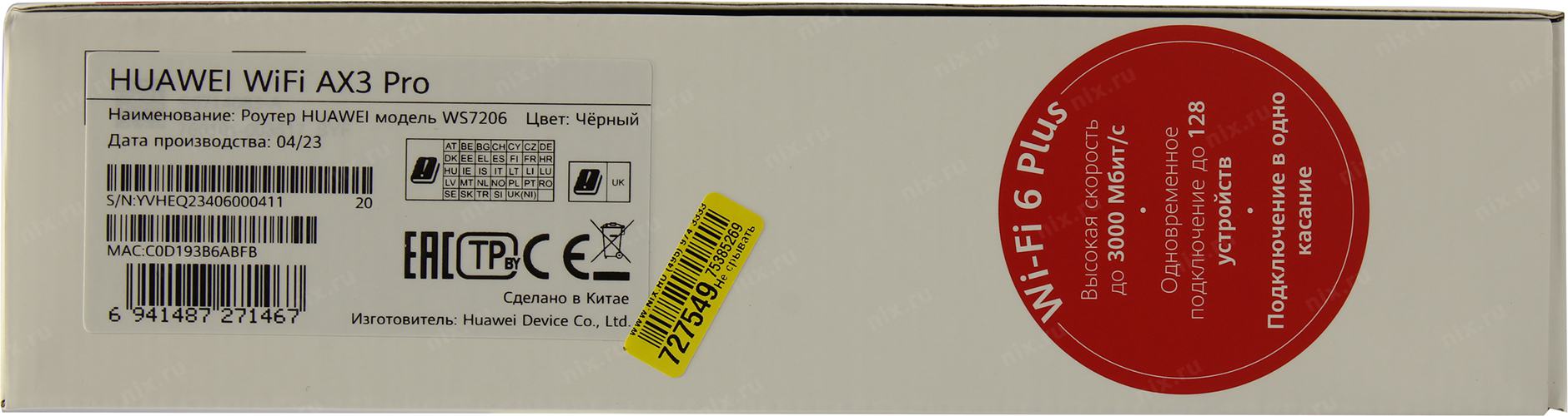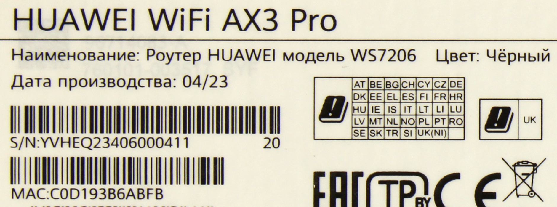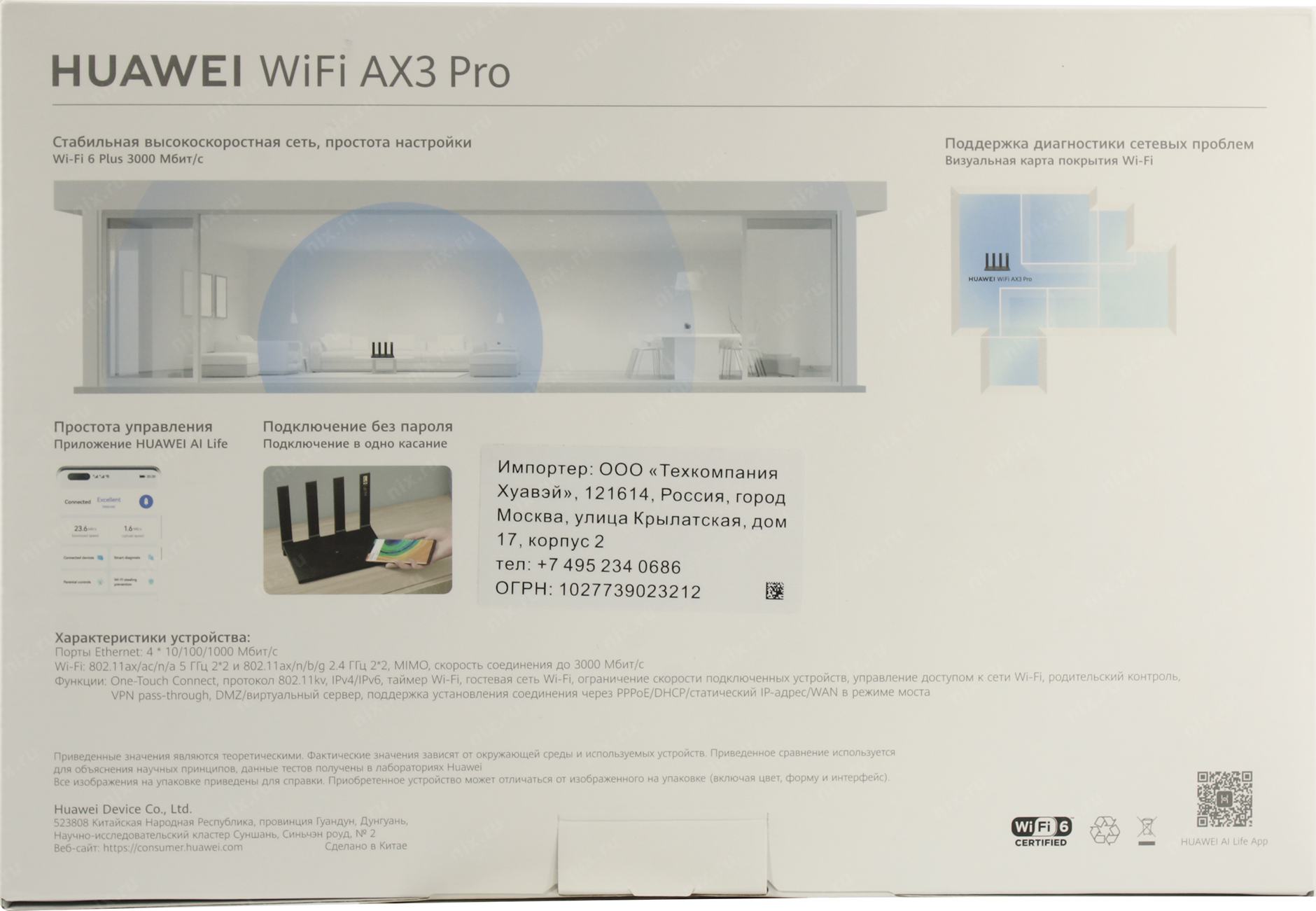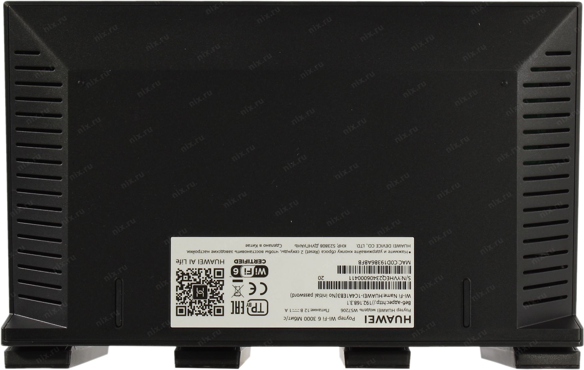 Роутер беспроводной Huawei AX3 Pro WS7206-20 (WiFi AX3 Pro) (53039947) AX3000 10/100/1000BASE-TX черный