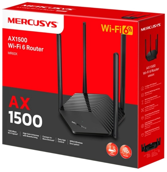 Роутер беспроводной Mercusys MR60X AX1500 10/100/1000BASE-TX черный