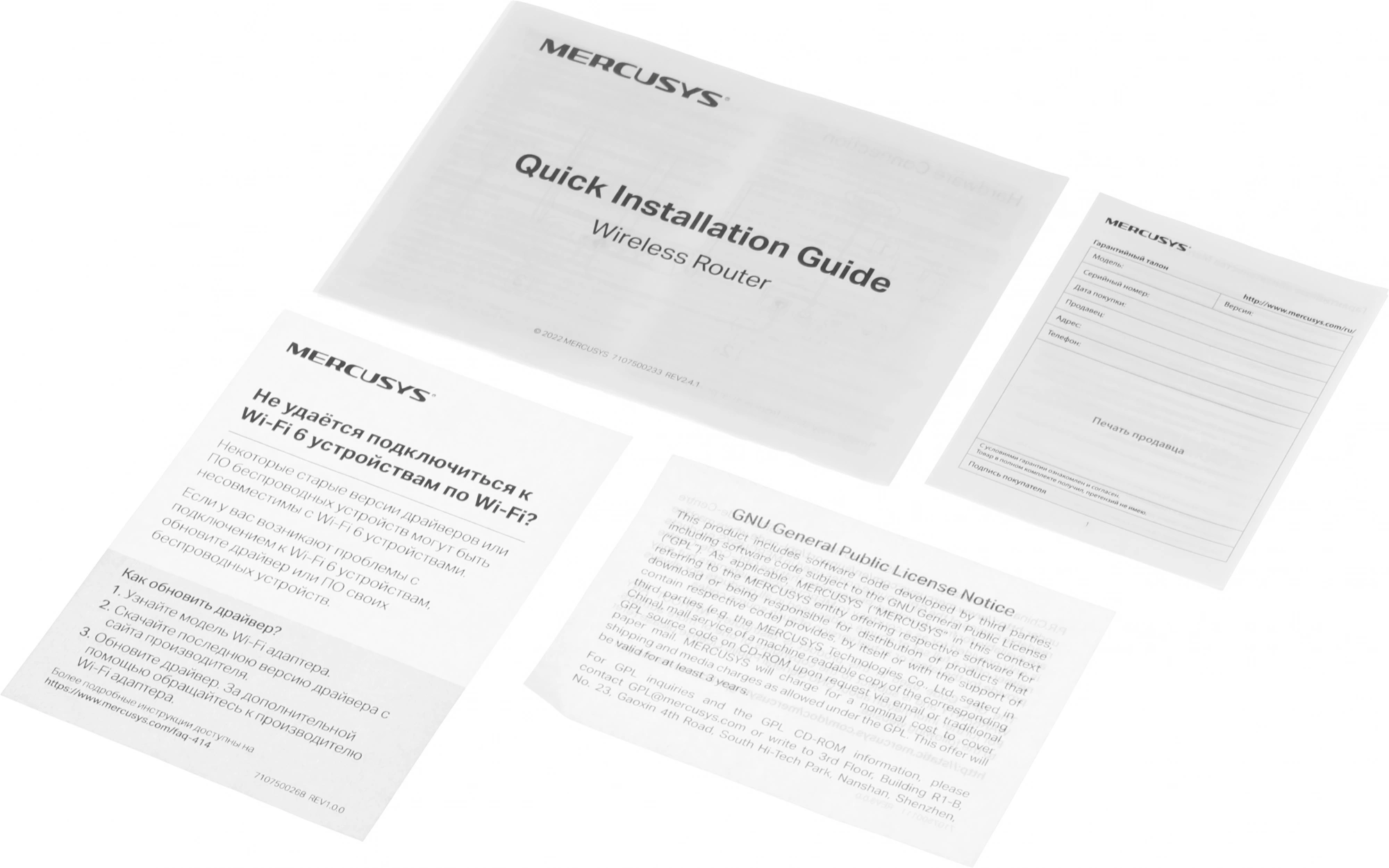 Роутер Адаптер питания Краткое руководство по настройке Кабель Ethernet RJ45