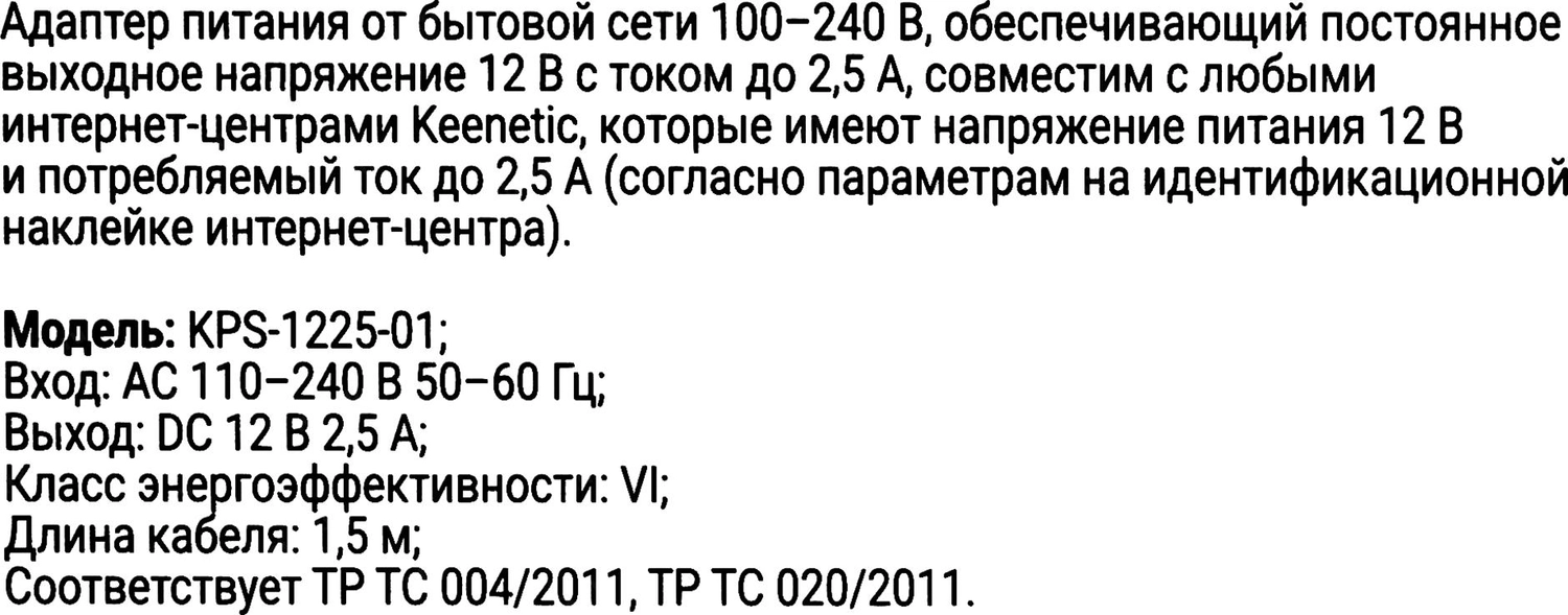 Блок питания Keenetic KPS-1225-01 (KPS-1225) 12В до 2.5А | НИКС Екатеринбург