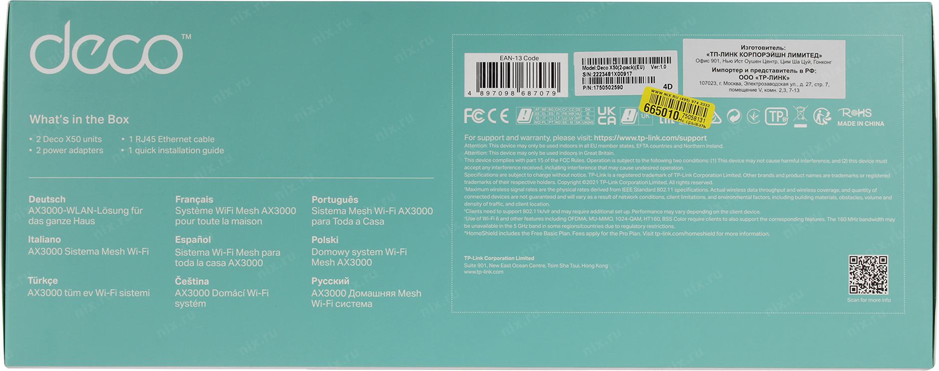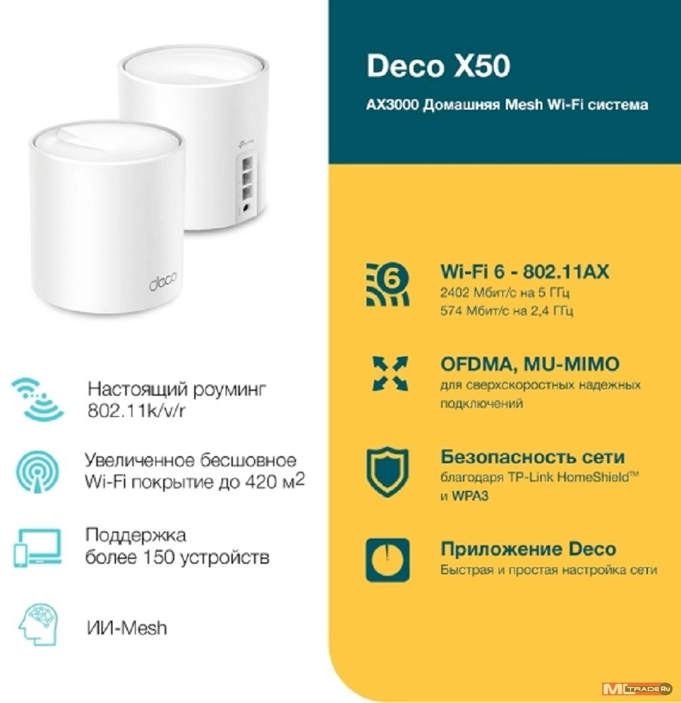 Маршрутизатор TP-Link Deco X50(2-pack), AX3000 Whole Home Mesh Wi-Fi 6 System | НИКС Екатеринбург