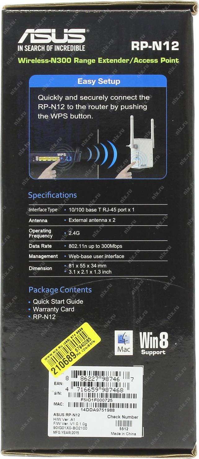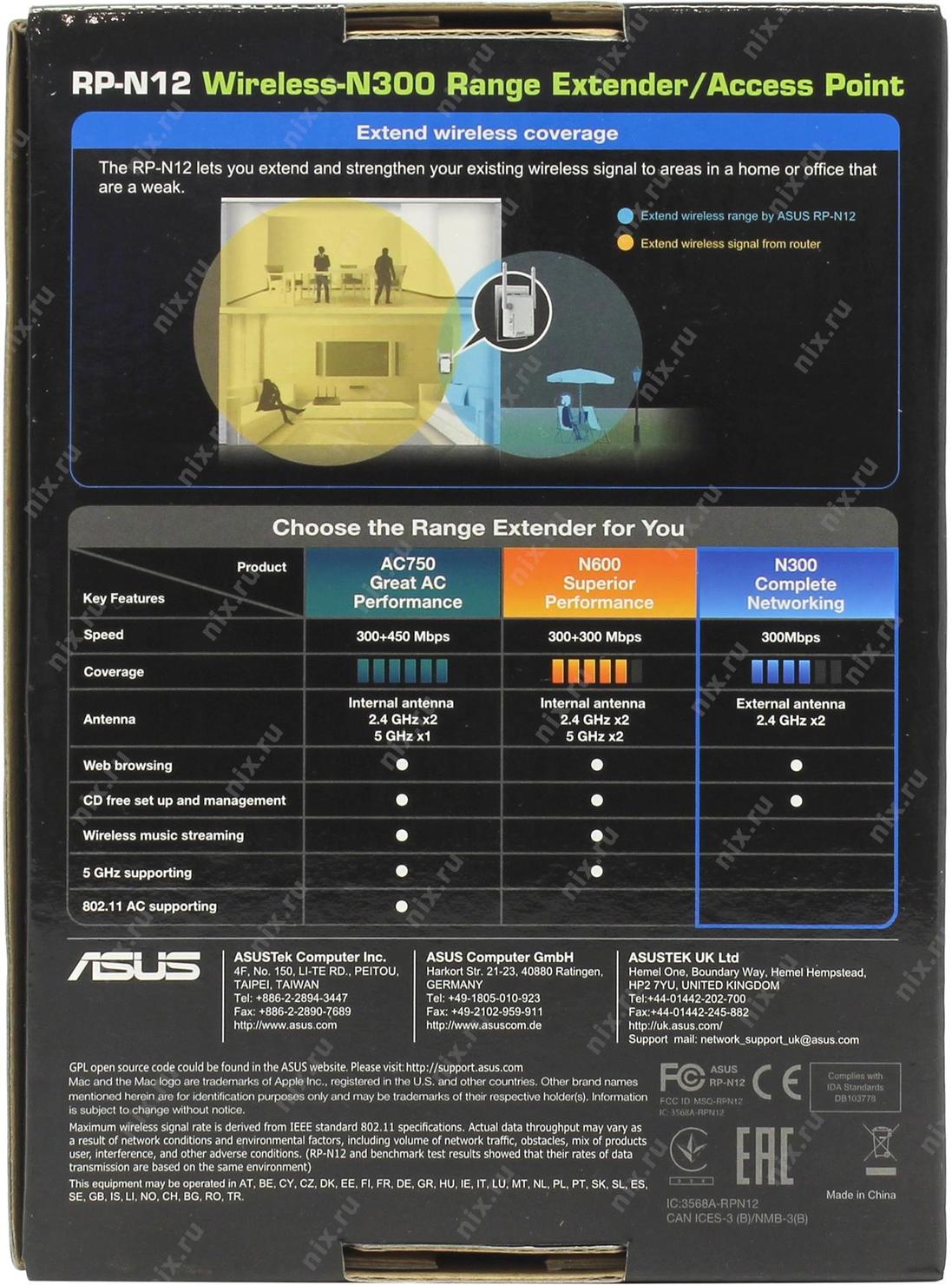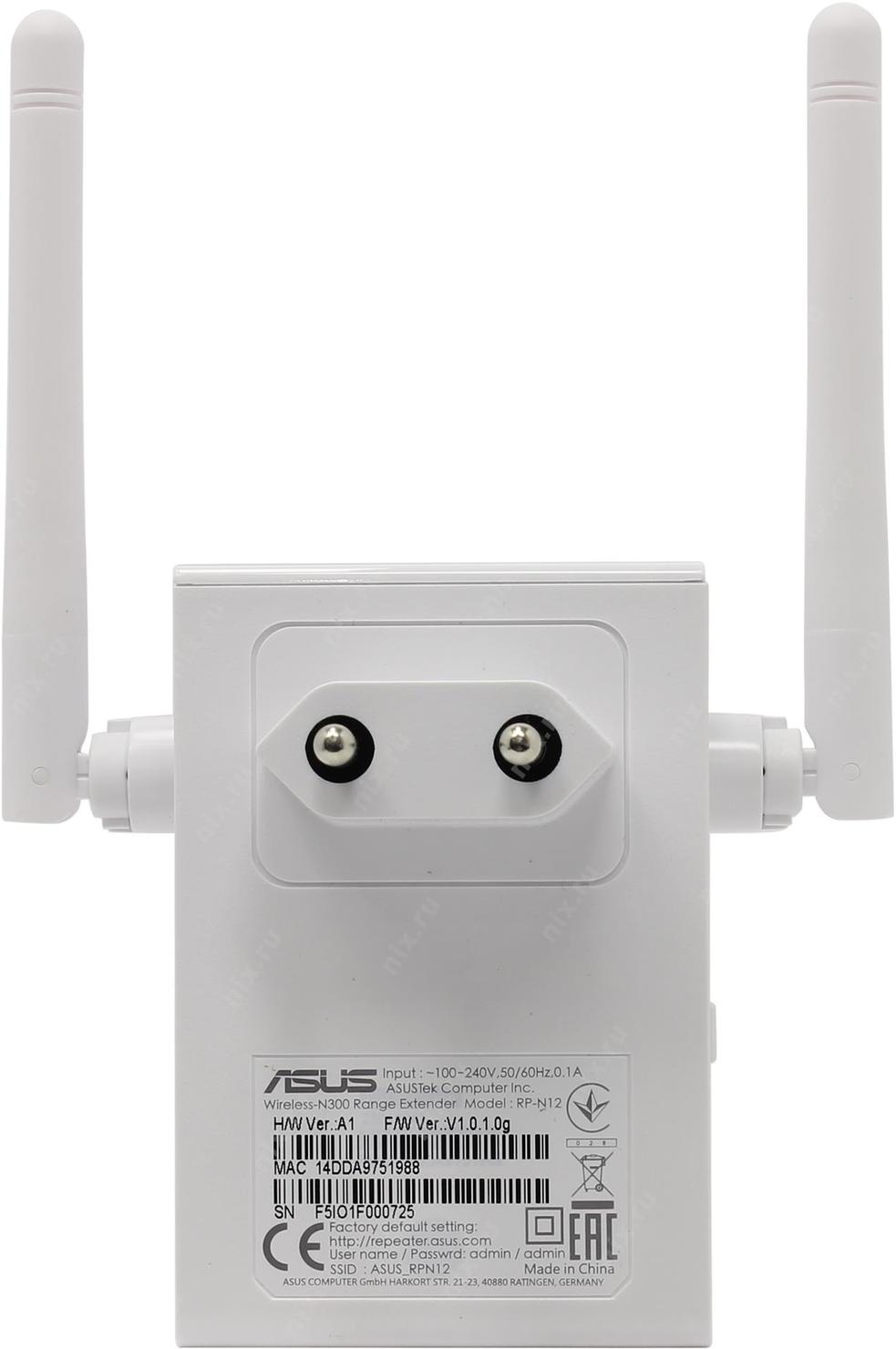 Репитер ASUS RP-N12 // N300 // 300Mbps, LAN | НИКС Екатеринбург
