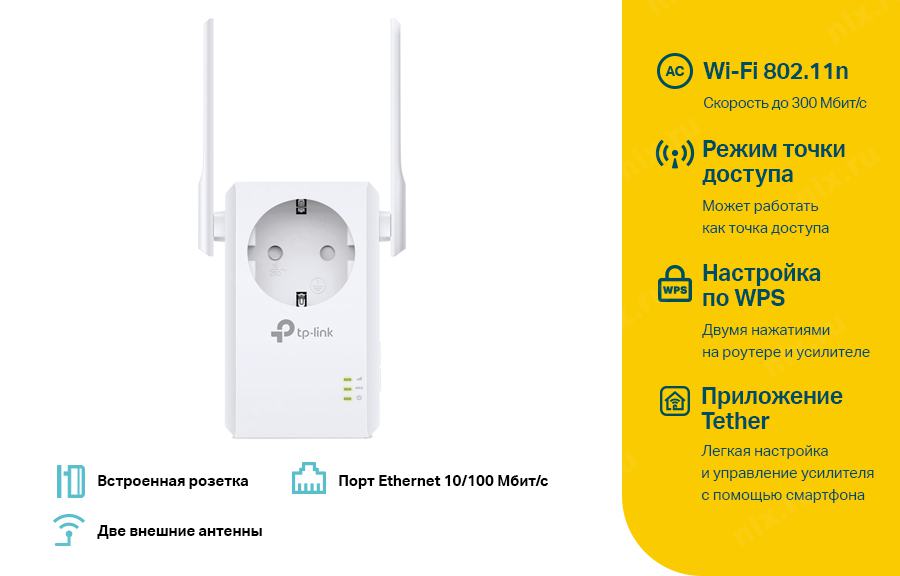Сетевое оборудование TP-Link TL-WA860RE N300 Усилитель Wi-Fi сигнала со встроенной розеткой