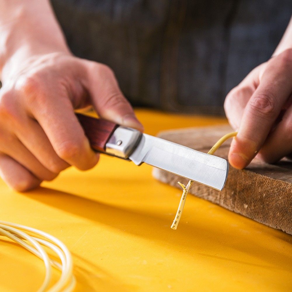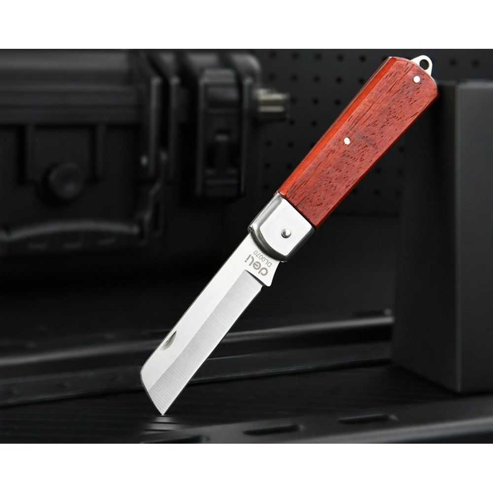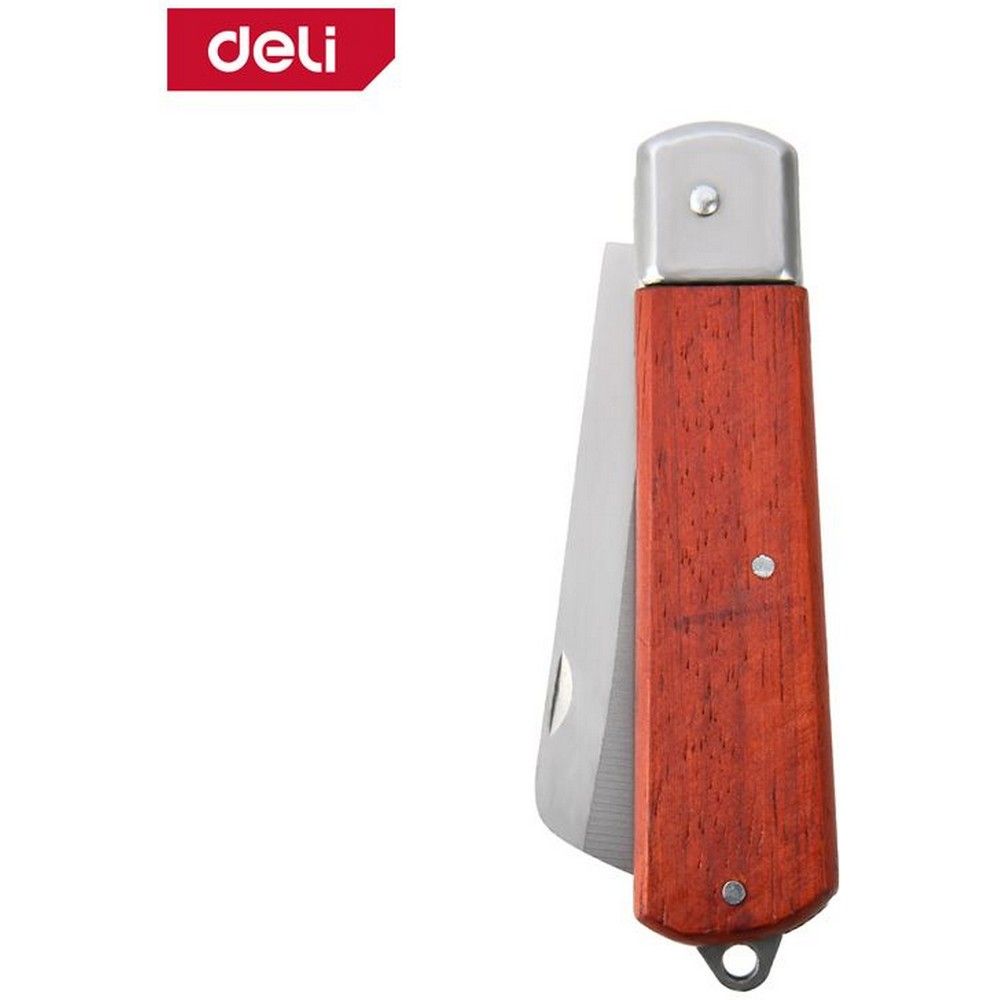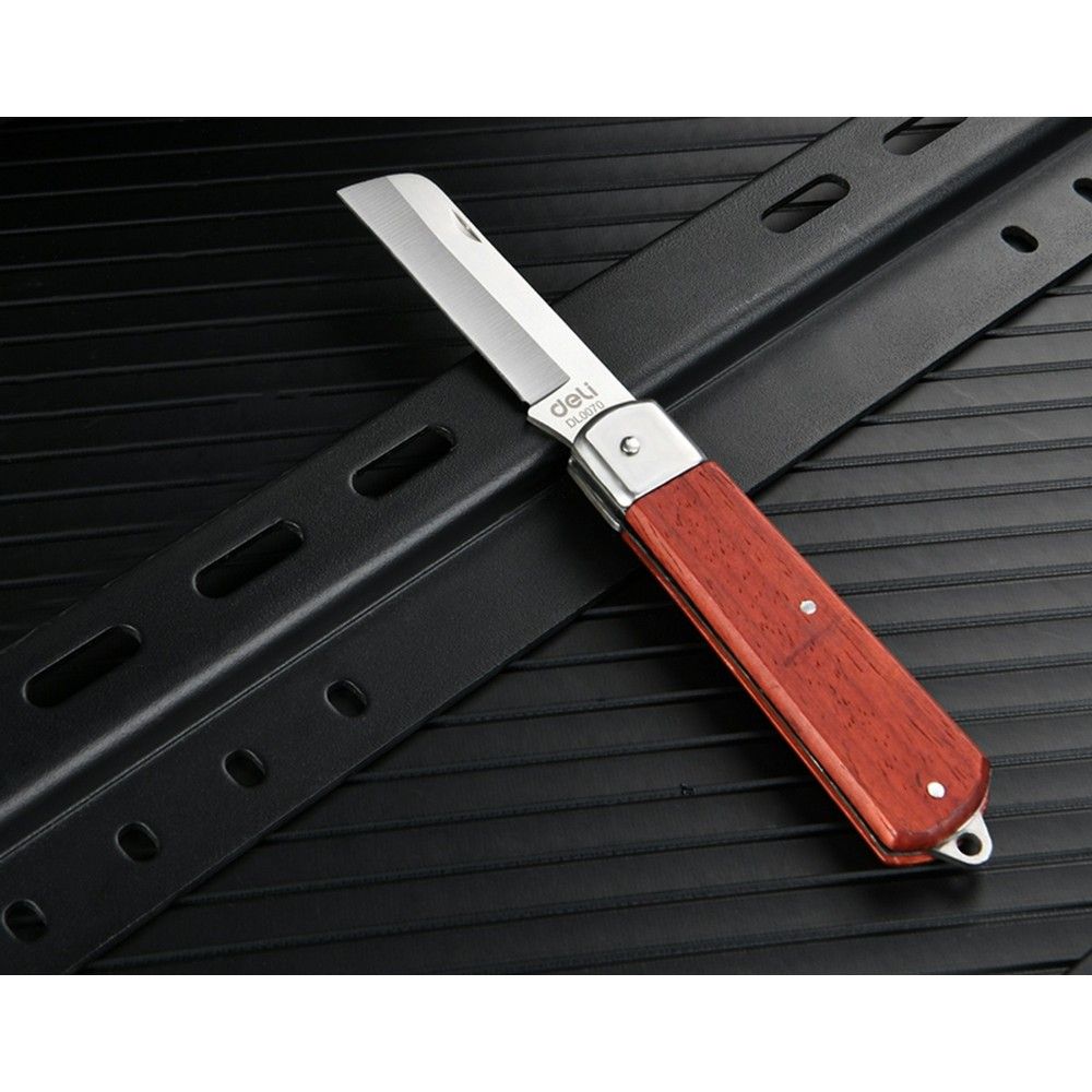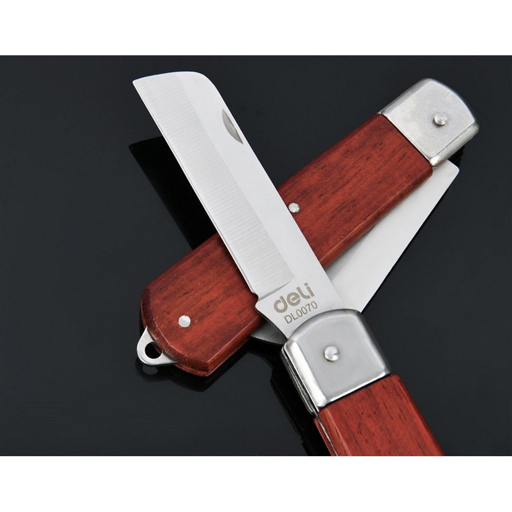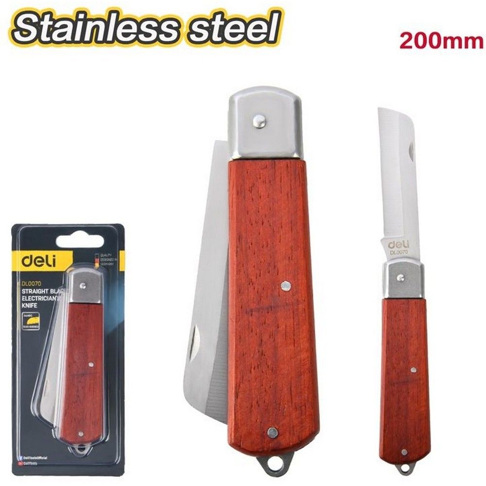 Нож электрика прямой складной Deli DL0070 длина 200мм, нержавеющая сталь, деревянная рукоять