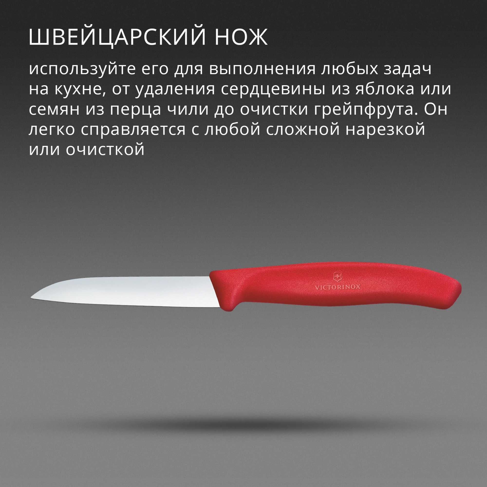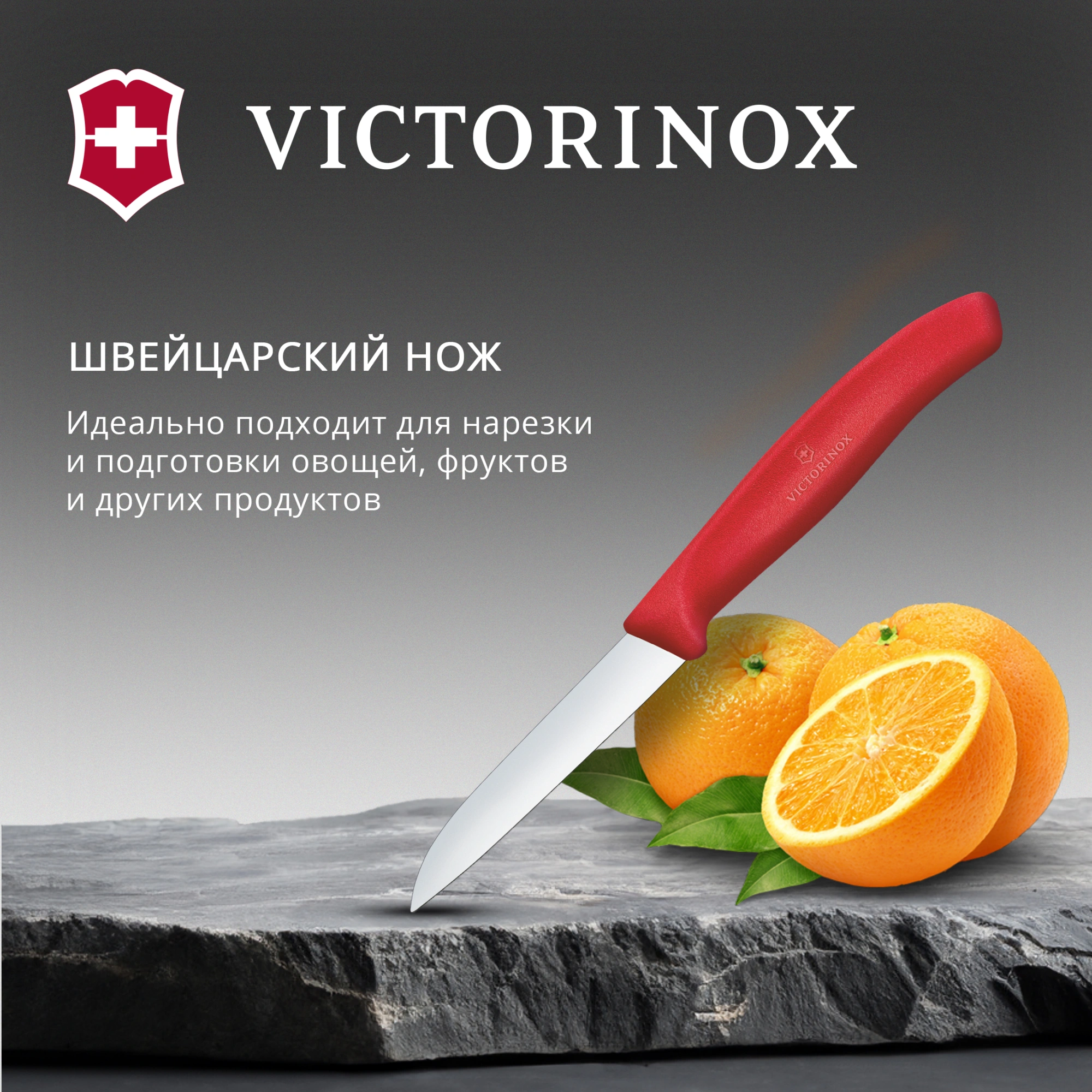 Нож кухонный Victorinox Swiss Classic (6.7401.C1) стальной для чистки овощей и фруктов лезв.80мм прямая заточка красный