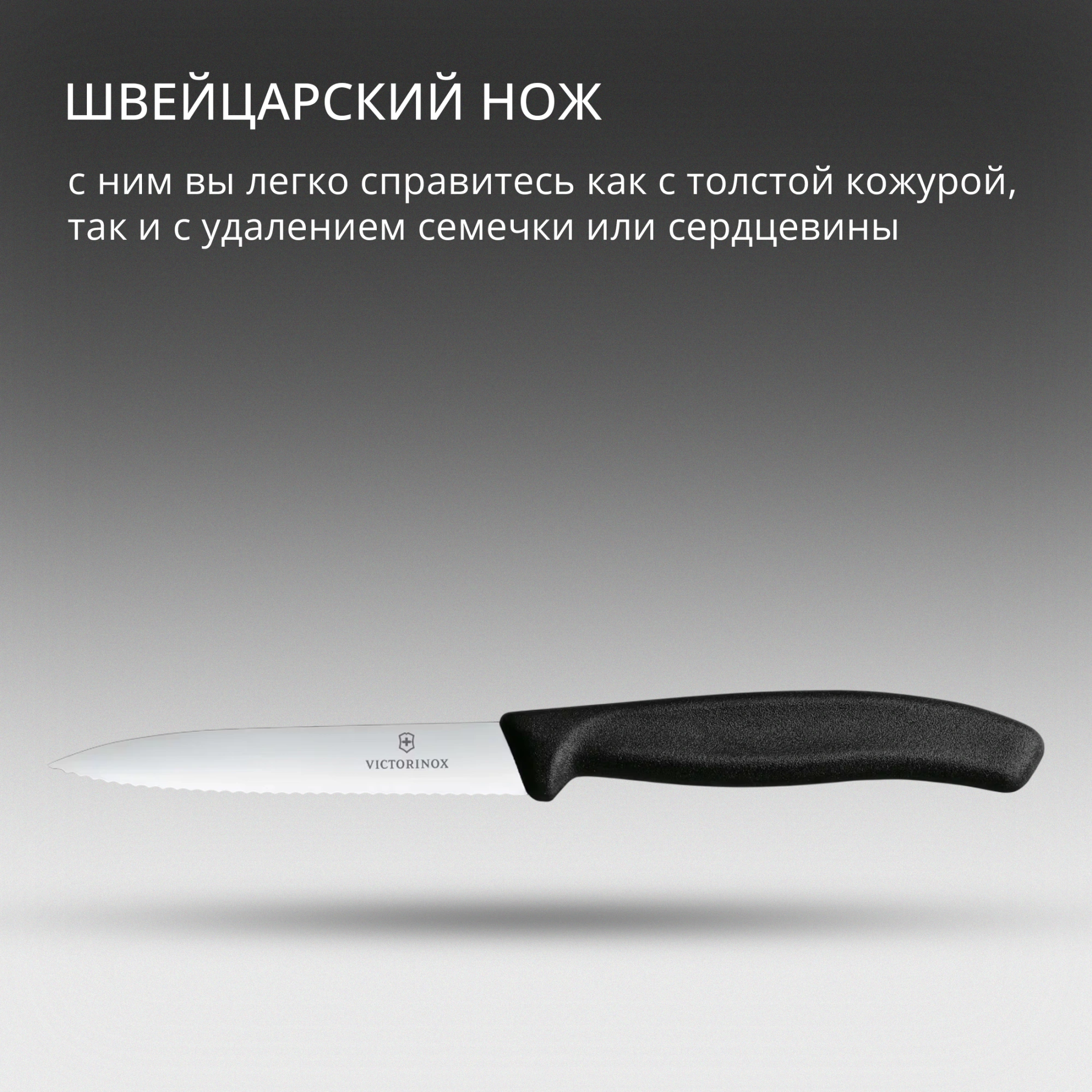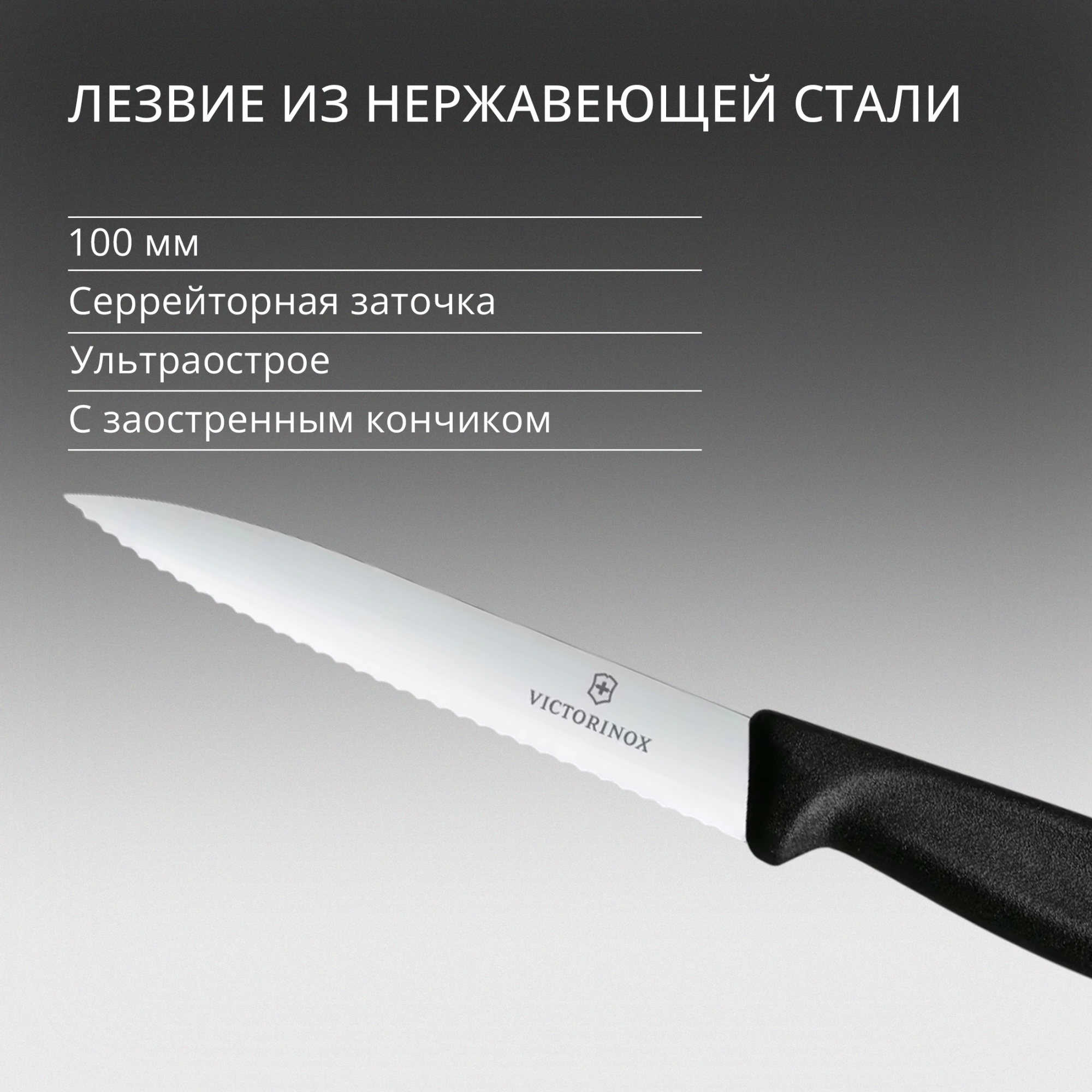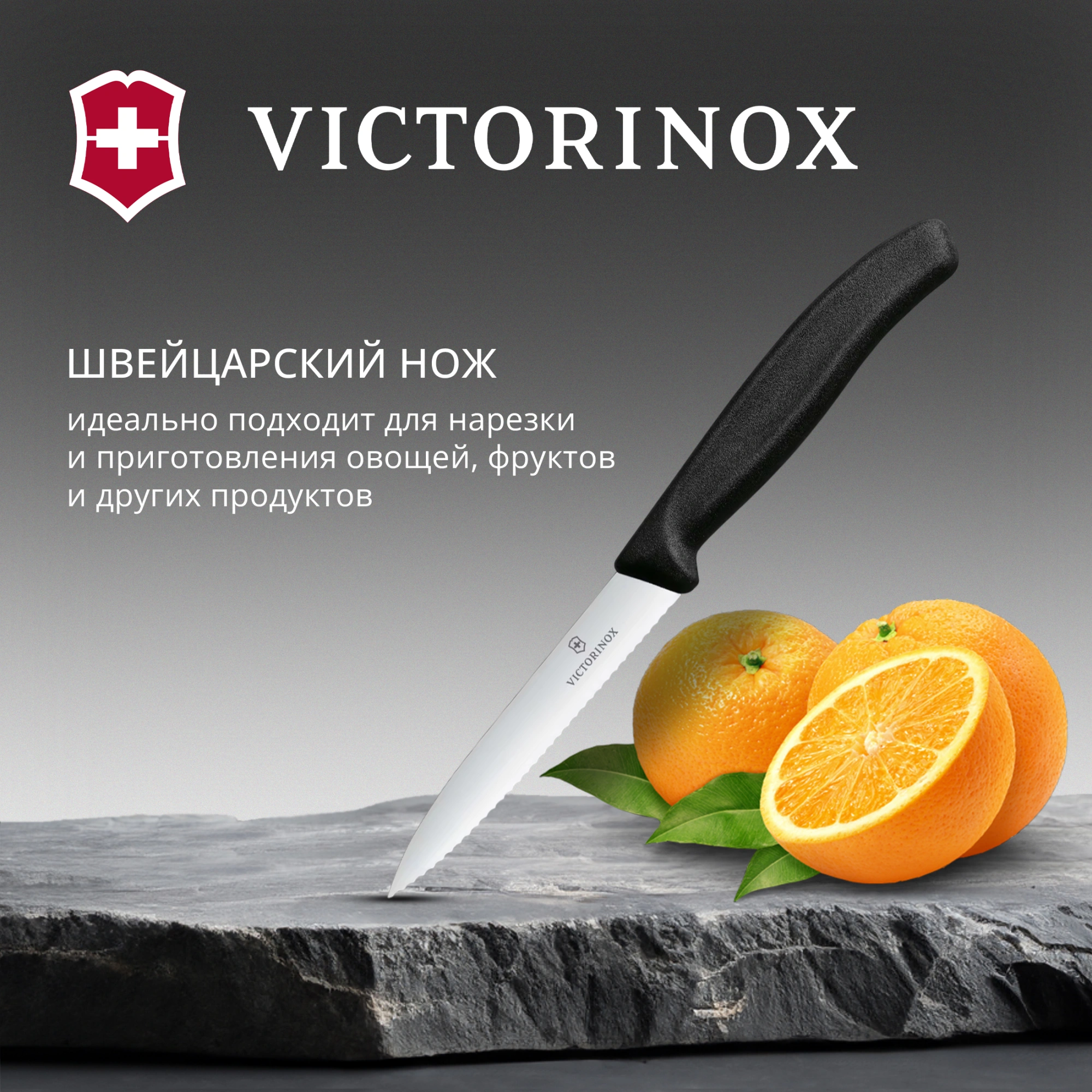 Нож кухонный Victorinox Swiss Classic (6.7733) стальной для чистки овощей и фруктов лезв.100мм серрейт. заточка черный