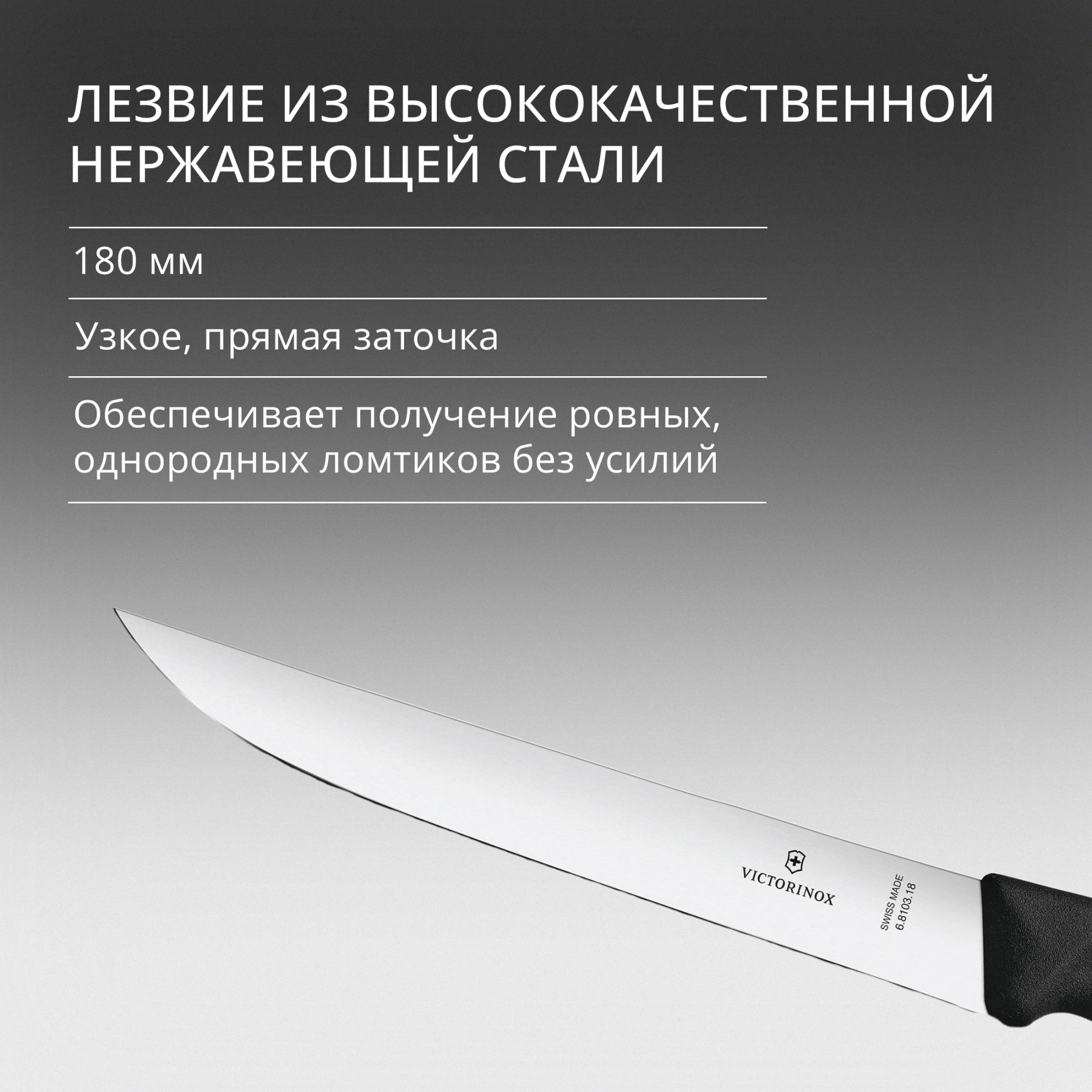 Нож кухонный Victorinox Swiss Classic (6.8103.18B) стальной разделочный лезв.180мм прямая заточка черный блистер