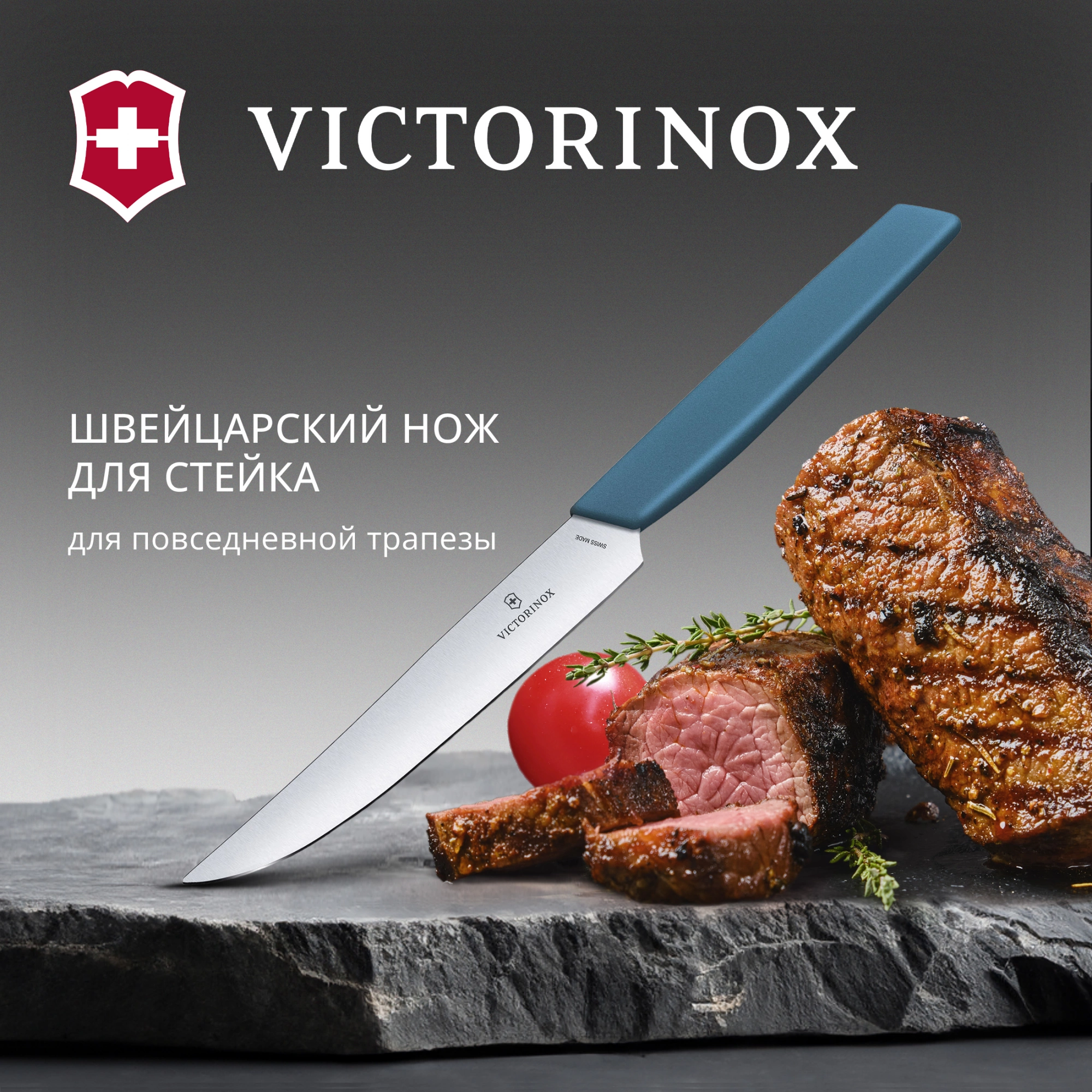Нож кухонный Victorinox Swiss Modern (6.9006.122) стальной столовый для стейка лезв.120мм прямая заточка синий