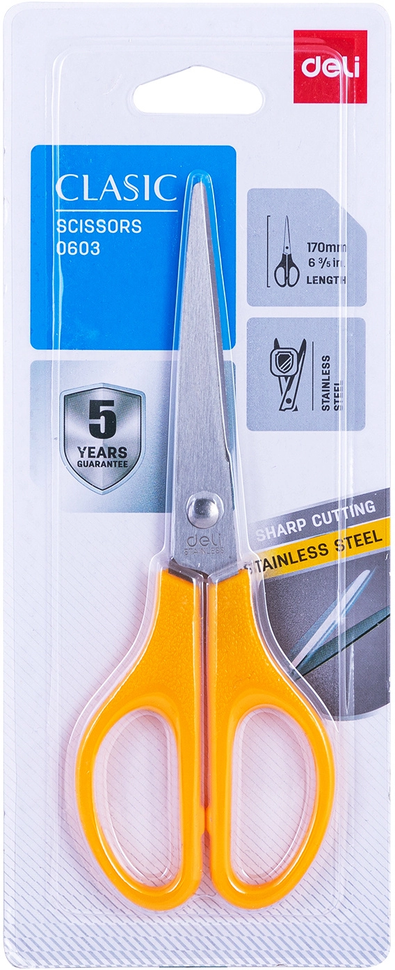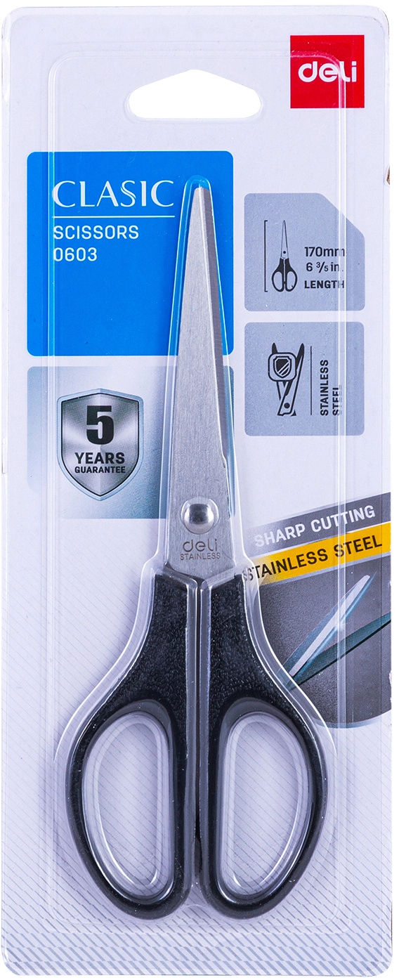 Ножницы Deli E0603 офисные 170мм ручки пластиковые сталь ассорти пакет с европод. (продается кратно 12 шт.)