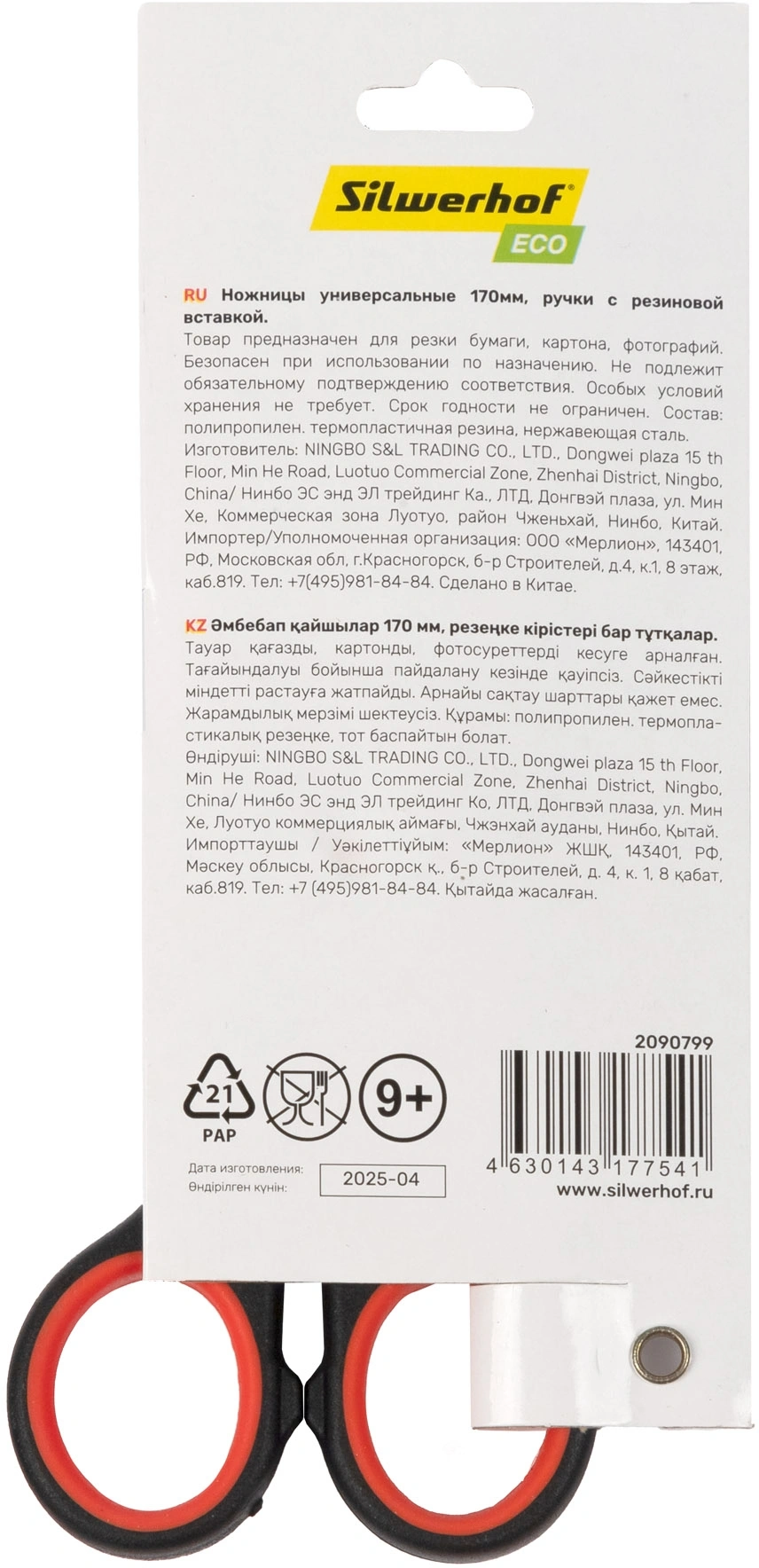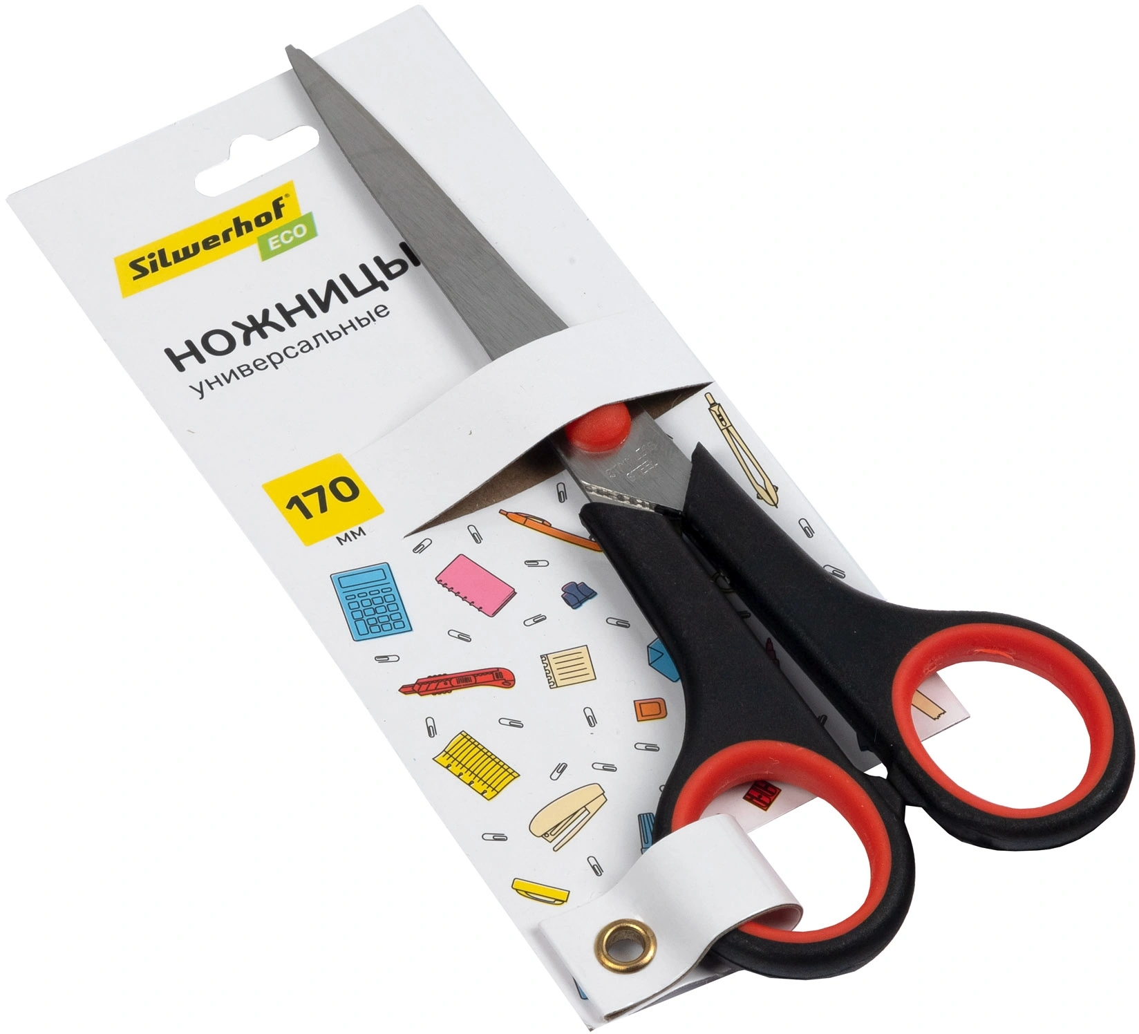 Ножницы Silwerhof Smart Eco универсальные 170мм ручки с резиновой вставкой черный/ красный (продается кратно 12 шт.)