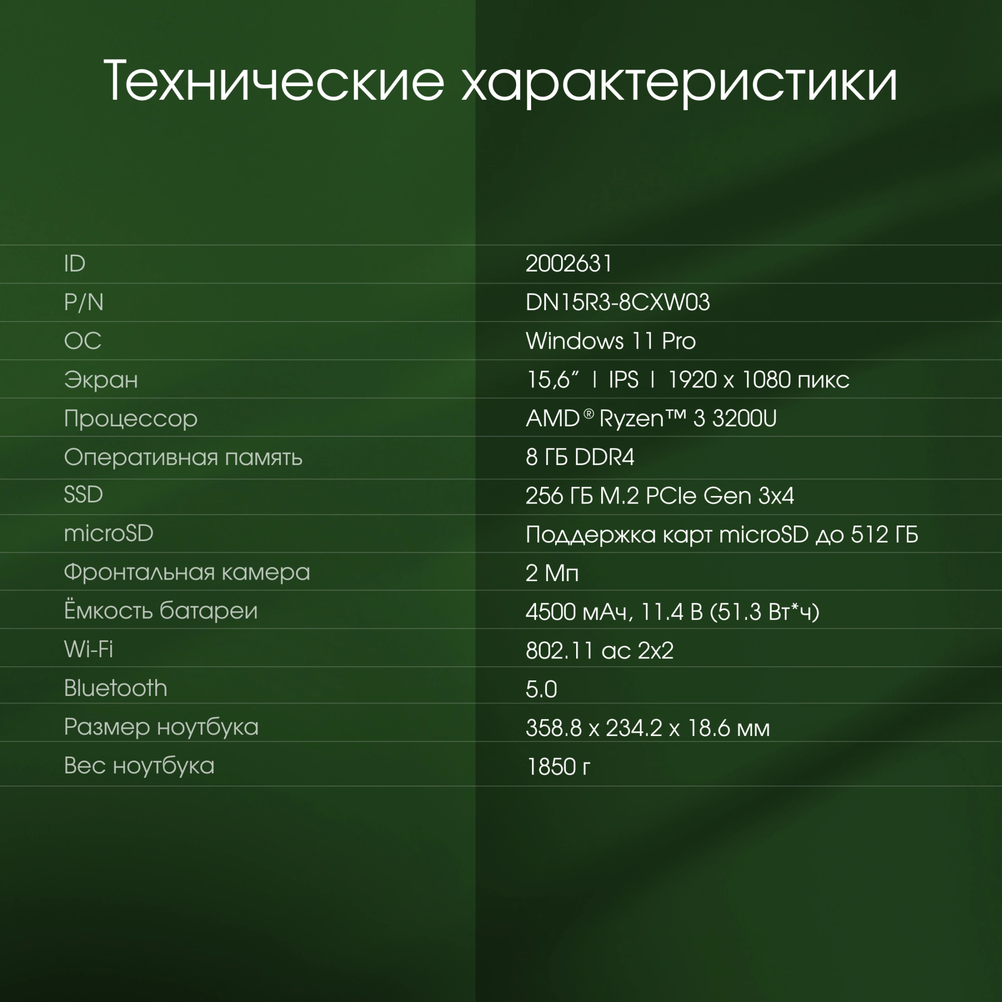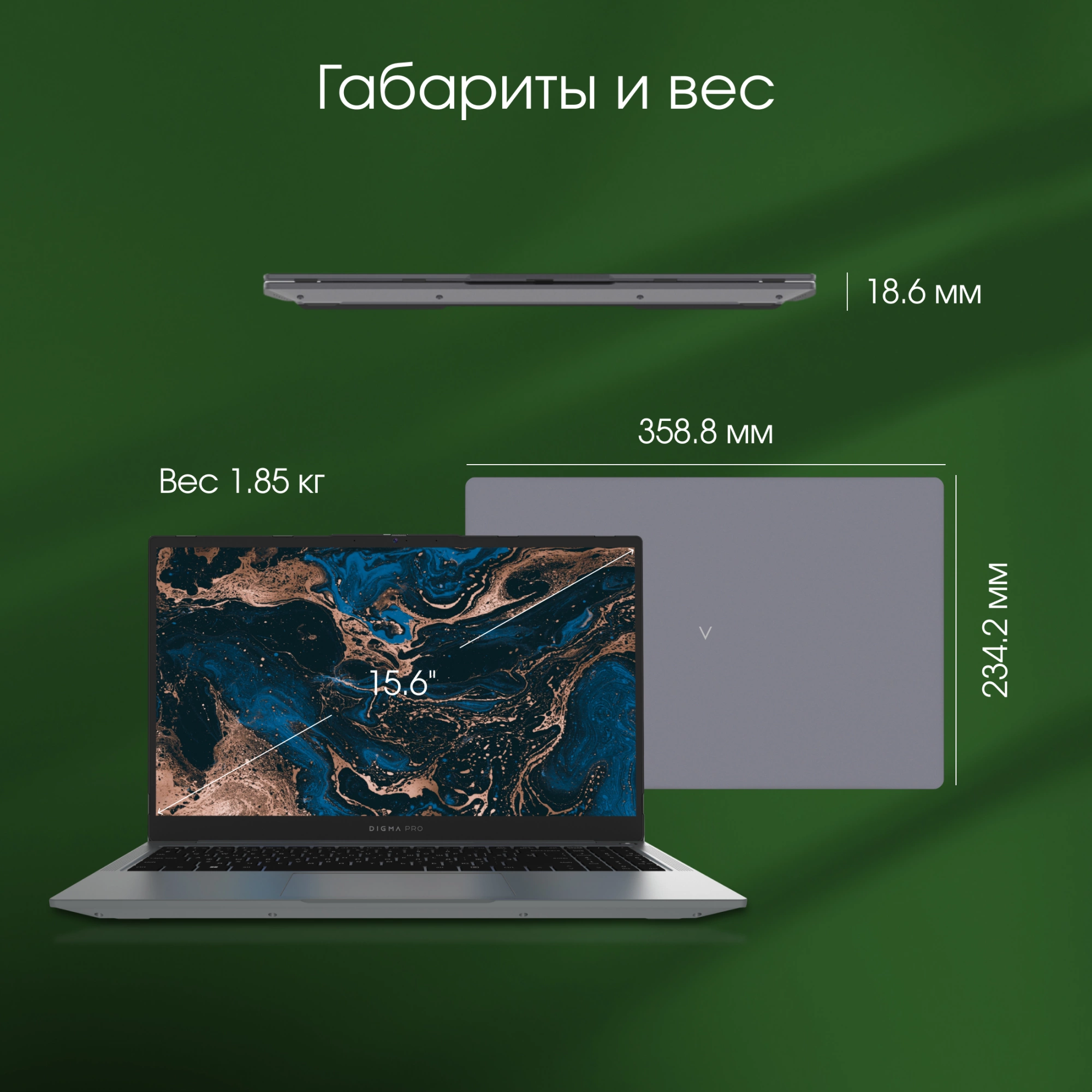 Ноутбук Digma Pro Parvus M Ryzen 3 3200U 8Gb SSD256Gb AMD Radeon Vega 3 15.6" IPS FHD (1920x1080) Windows 11 Pro dk.grey WiFi BT Cam 4500mAh (DN15R3-8CXW03)