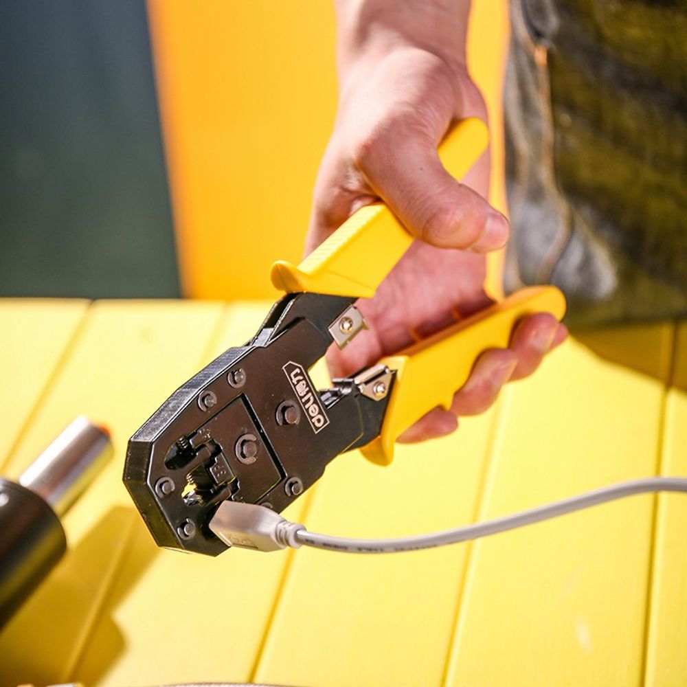 Обжимные клещи Deli DL2468 4P,6P,8P 200мм, в комплекте инструмент для снятия изоляции и набор коннектеров
