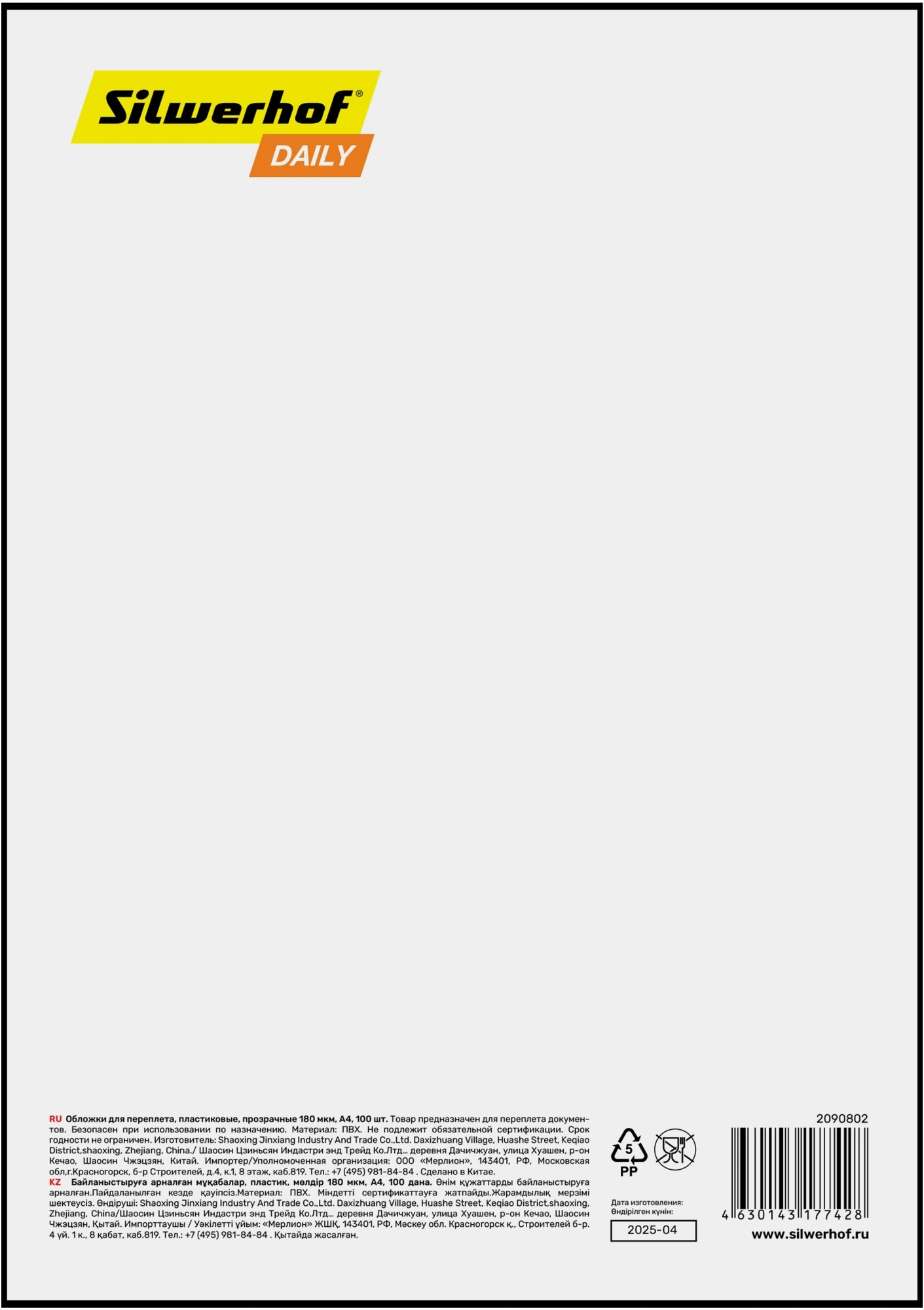 Обложки для переплёта Silwerhof Daily A4 180мкм прозрачный (100шт)