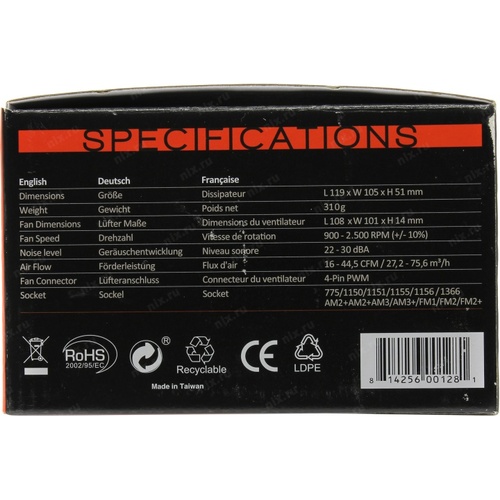 105 x 80 x 119 мм (с вентилятором), 108 x 14 x 101 мм (вентилятор)