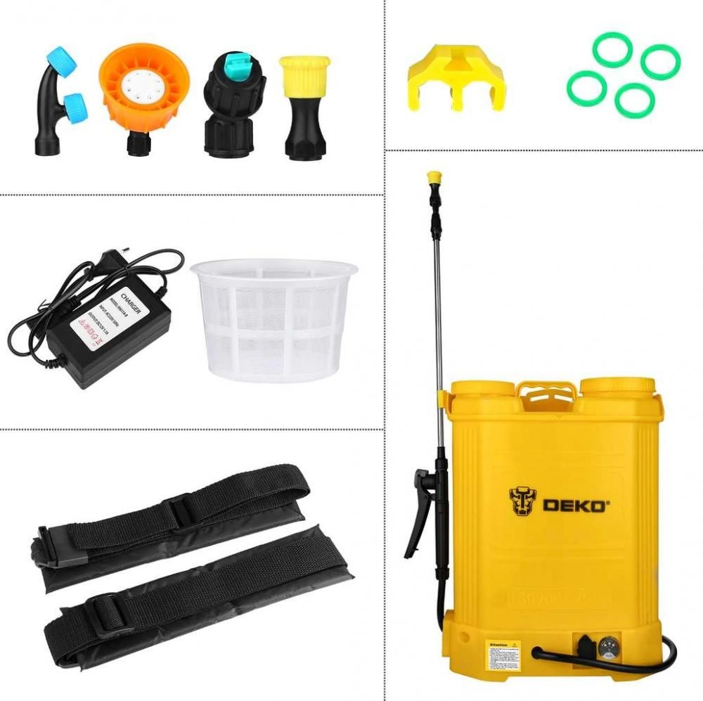 Опрыскиватель садовый аккумуляторный используется для распыления воды и удобрений, дезинфекции, дезинсекции, мытья окон, машин и стен, защиты растений от вредителей. Оснащен аккумулятором 12В и сетевым адаптером, который обеспечивает быструю зарядку. Регулируемые лямки, можно носить как ранец.