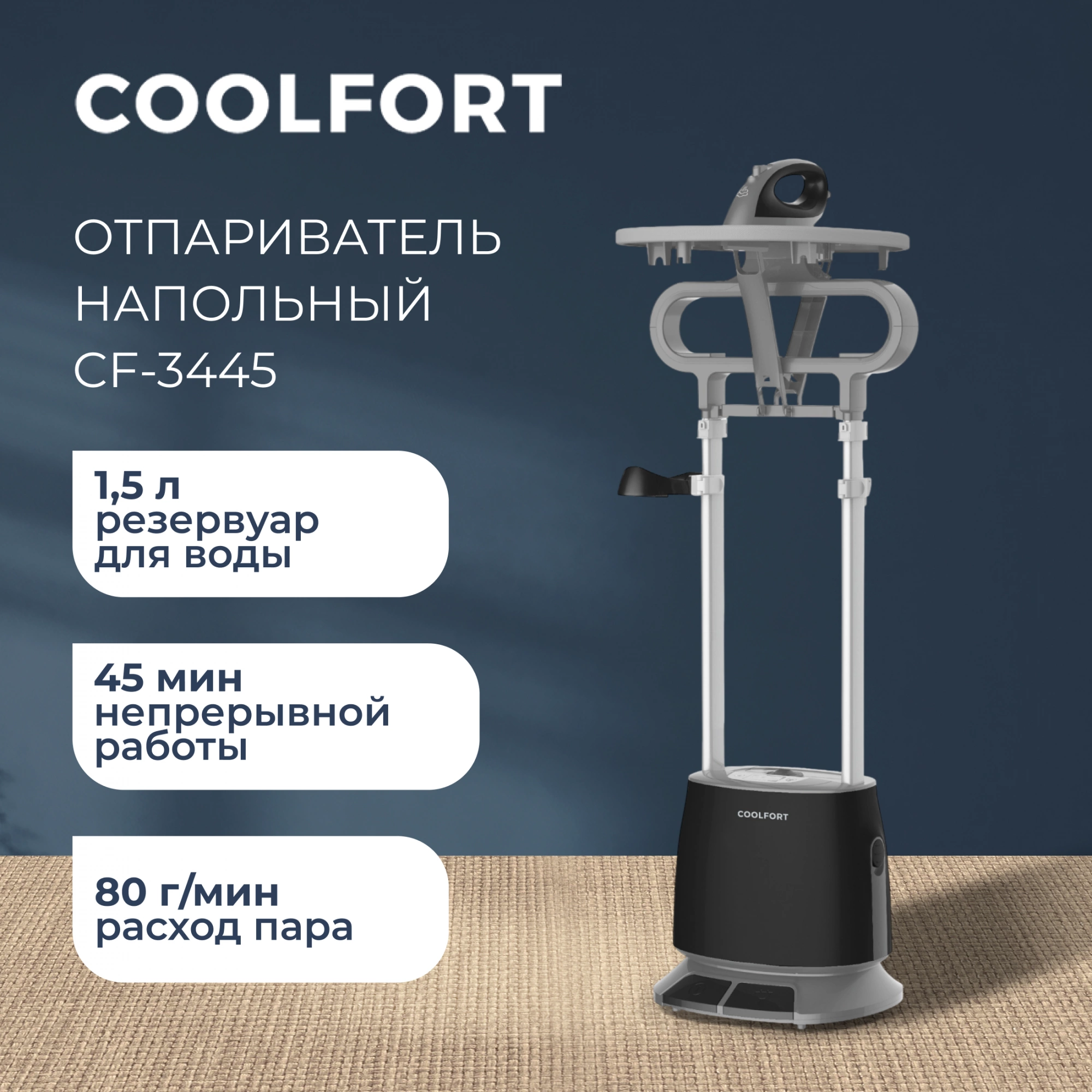 Отпариватель напольный Coolfort CF-3445 2200Вт черный/серый