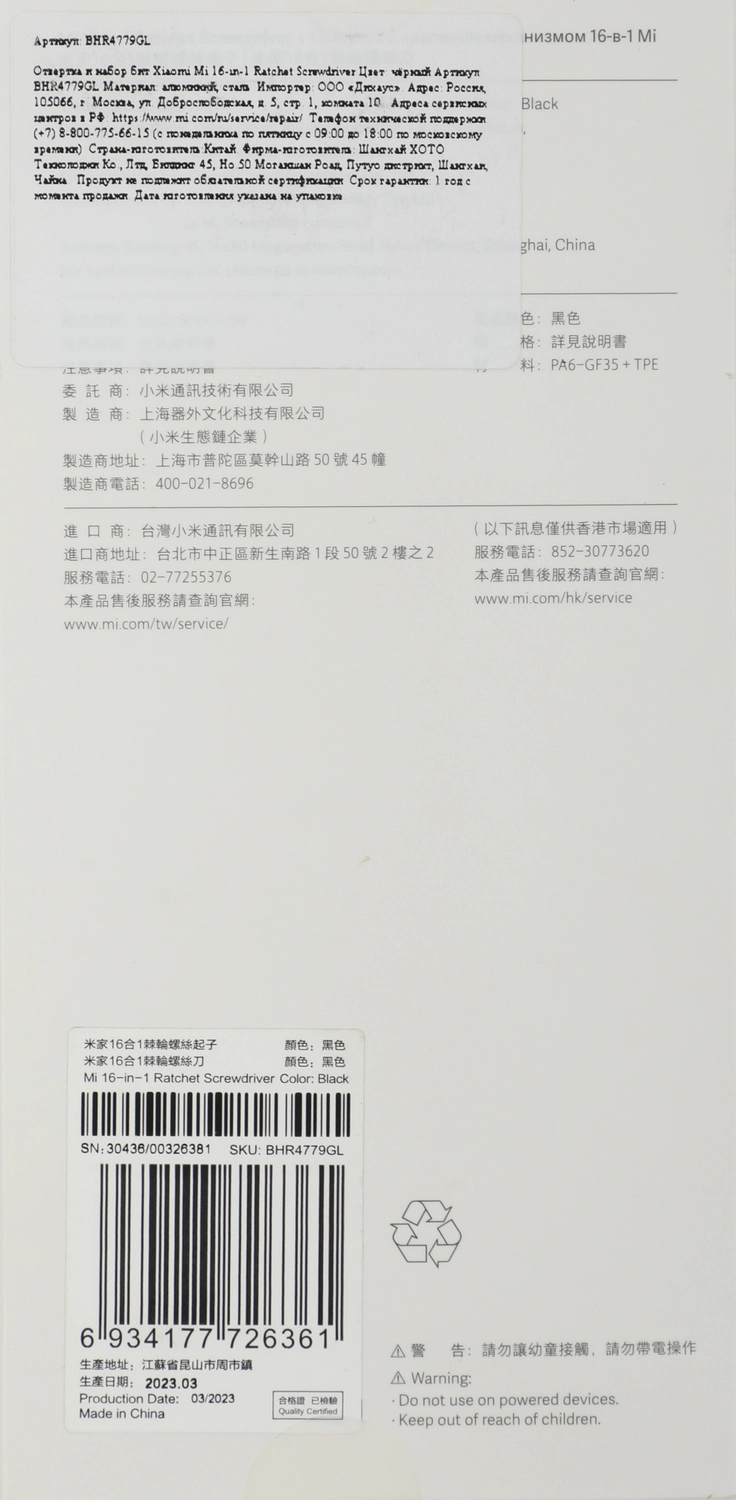 Отвертка Xiaomi Mi 16-in-1 Ratchet Screwdriver в компл.:16 предметов жесткий кейс (BHR4779GL)