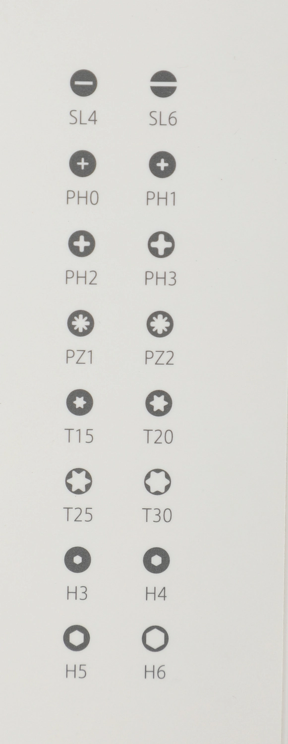 набор бит H/ HEX (шестигранник) , набор бит Ph (крест) , набор бит Pz (крест) , набор бит SL (шлиц) , набор бит Torx