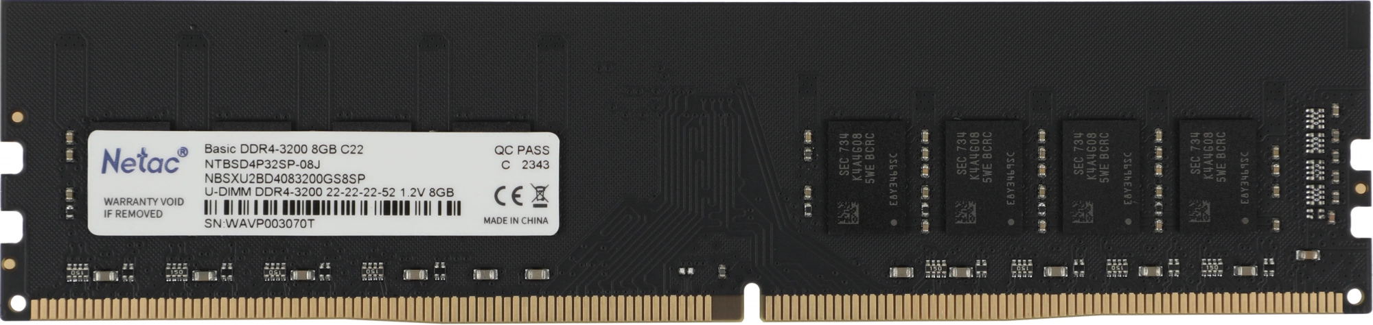 Память DDR4 8GB 3200MHz Netac NTBSD4P32SP-08J Basic RTL PC4-25600 CL22 DIMM 288-pin 1.2В single rank Ret