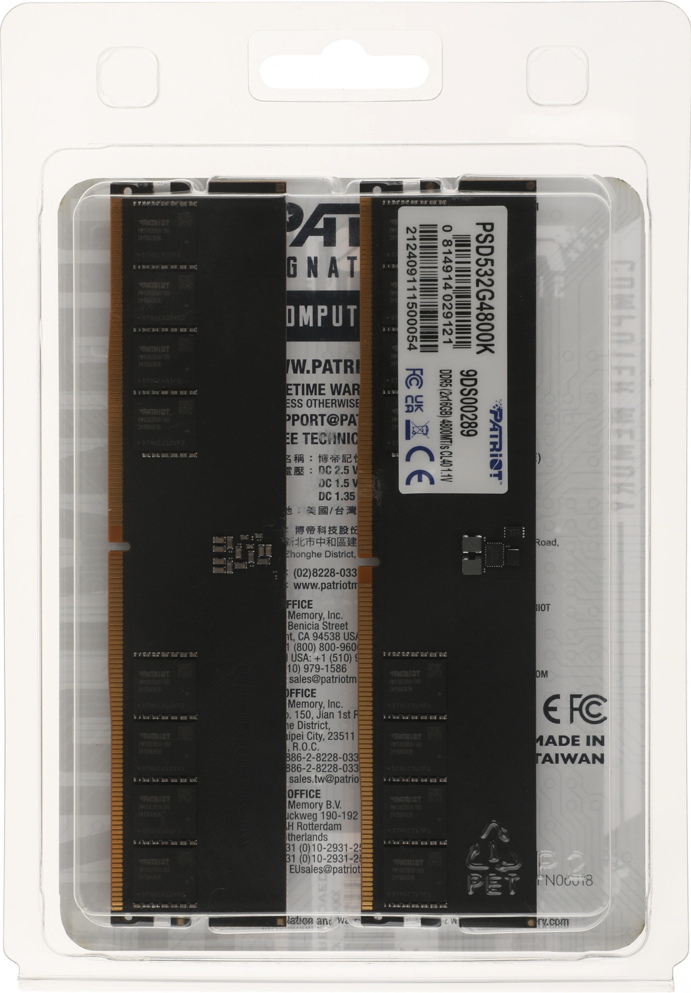 Память DDR5 2x16Gb 4800MHz Patriot PSD532G4800K Signature RTL Gaming PC5-38400 CL40 DIMM 288-pin 1.1В Ret