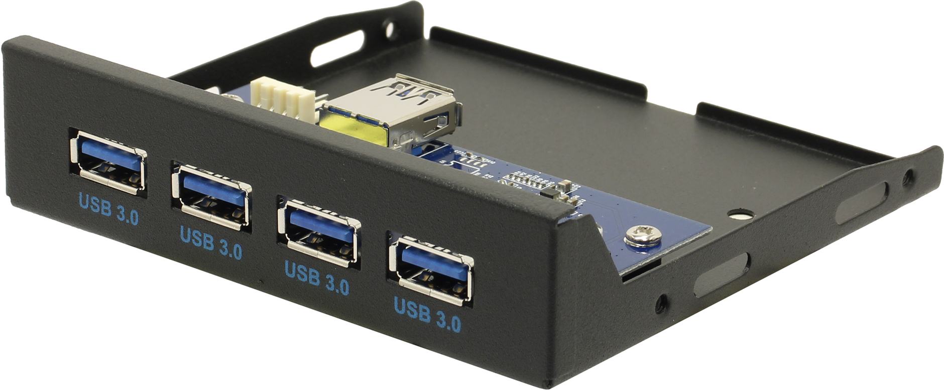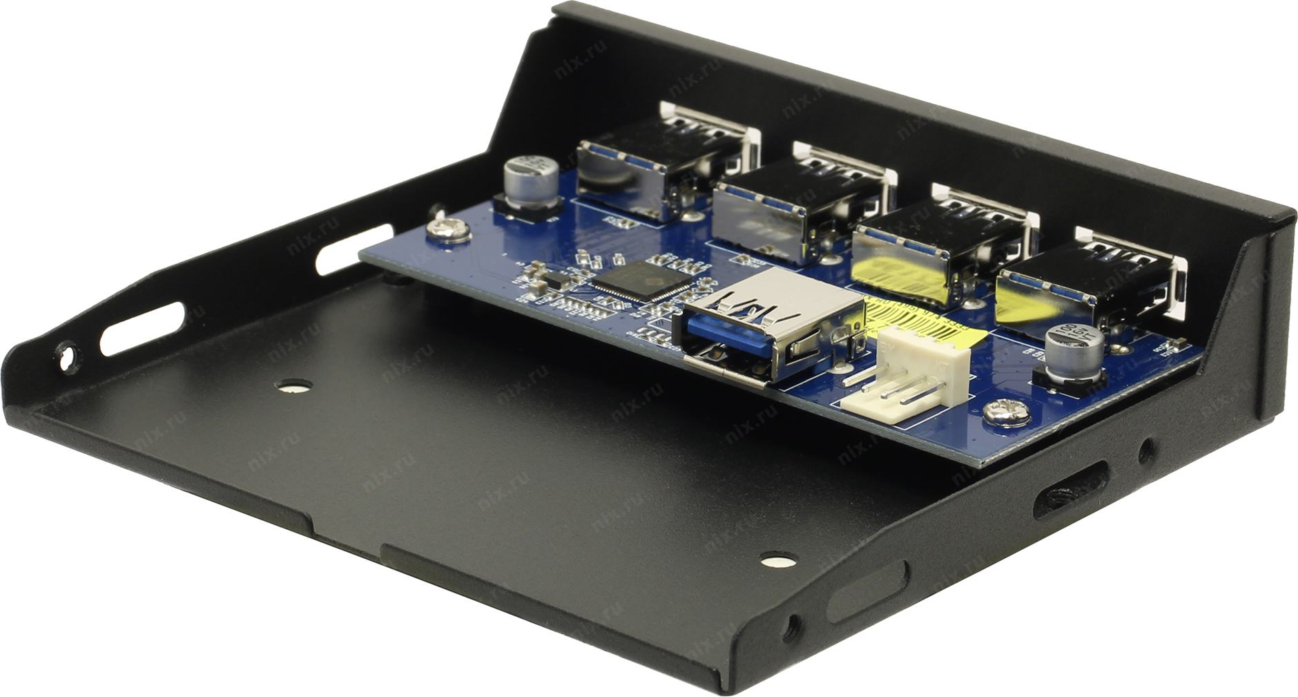 Панель с четырьмя портами USB3.0 (подключение к 20-пин разъему на материнской плате) . Панель устанавливается в отсек 3.5" . Питание либо от разъема питания для FDD, либо через переходник от разъема питания SATA