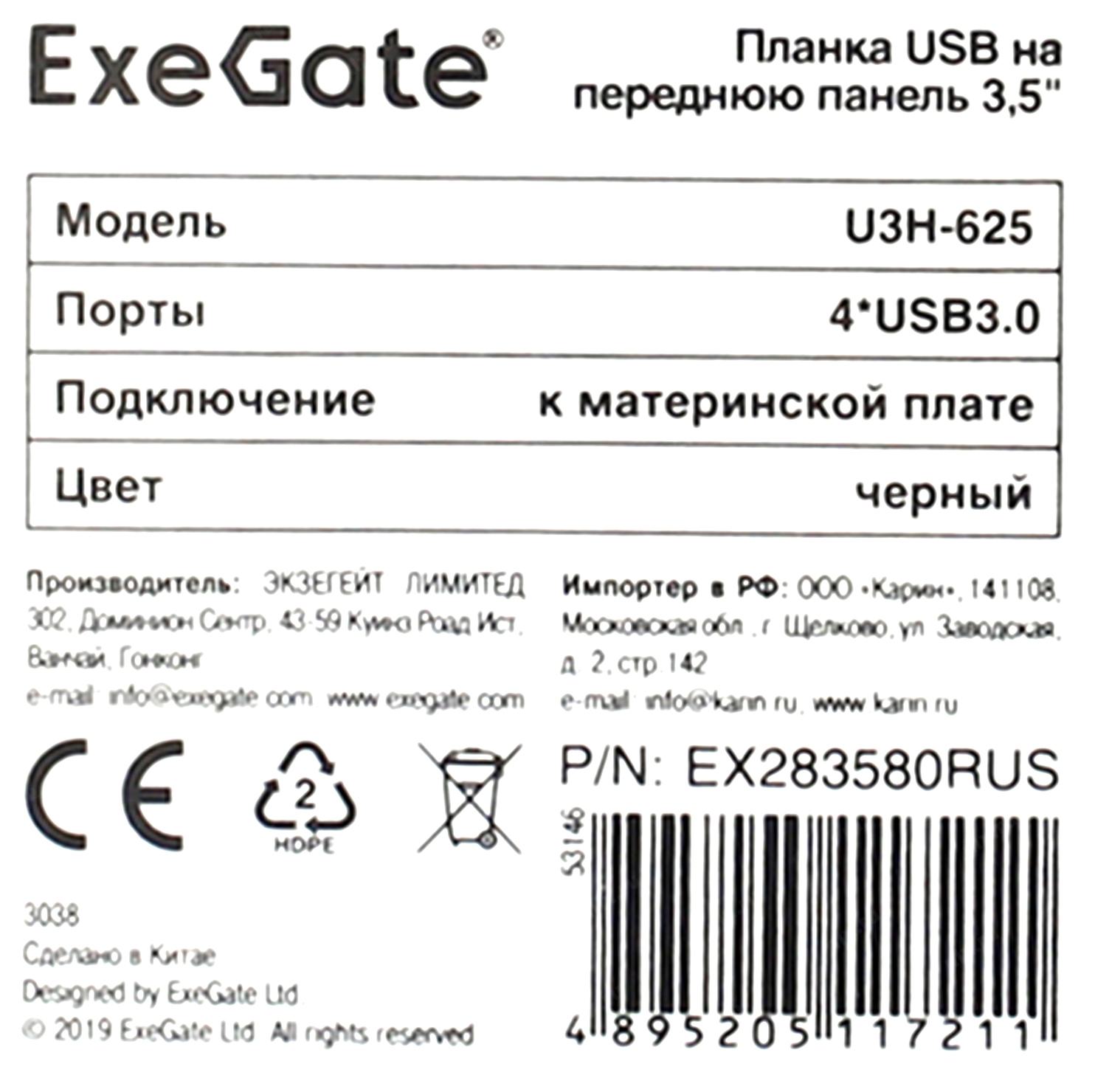 Панель расширения Exegate U3H-625 4xUSB3.0 port Front Panel < EX283580RUS> (крепление на лицевую панель корпуса 3.5" )
