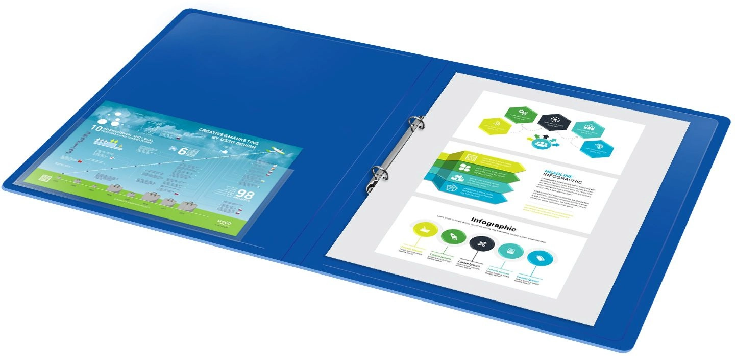 Папка на 2-х кольцах Бюрократ -0818/ 2RBLU A4 пластик 0.7мм кор.18мм внутр. с вставкой синий (продается кратно 28 шт.)