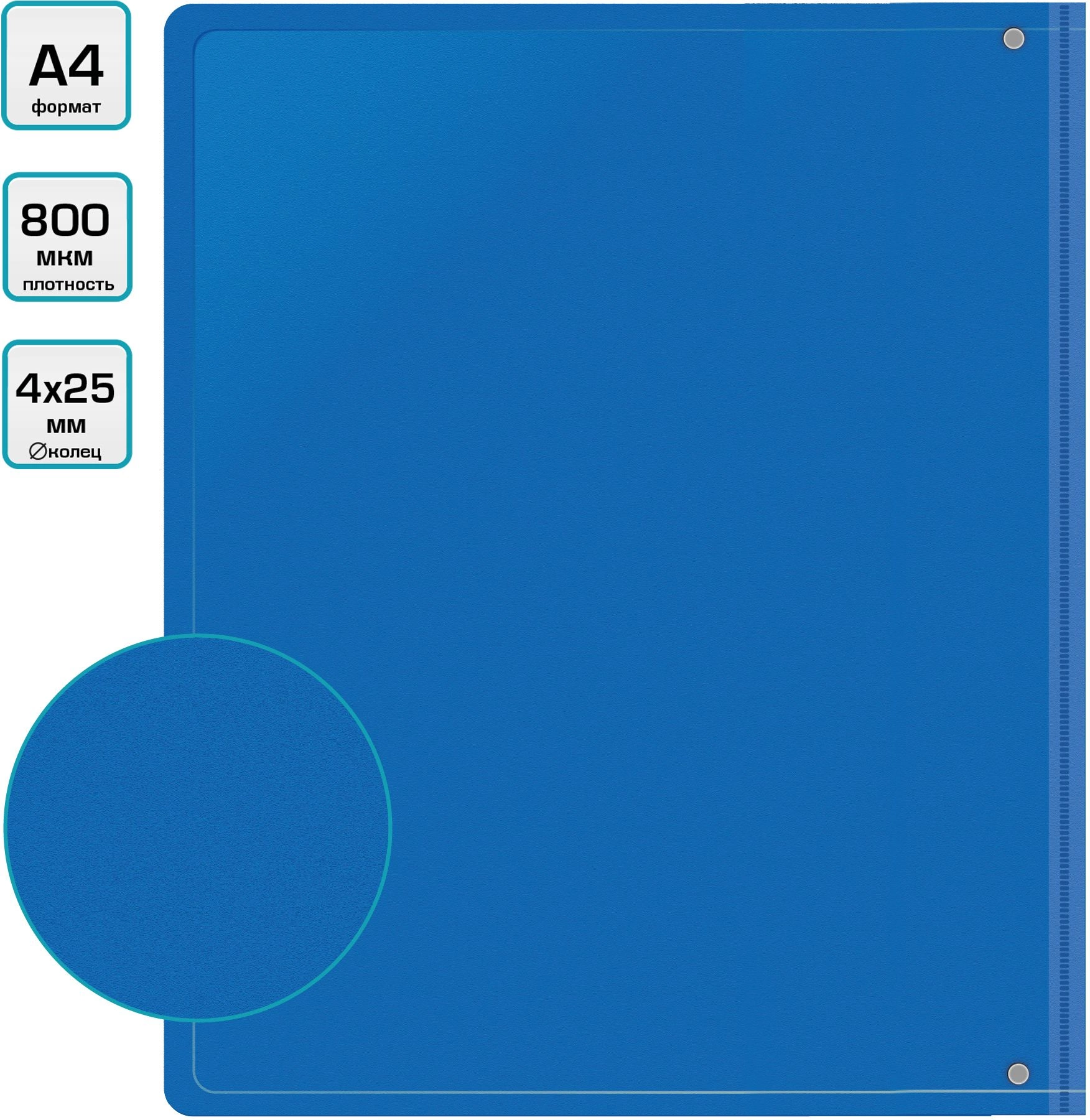 Папка на 4-х D-кольцах Бюрократ -0840/ 4DBLU A4 пластик 0.8мм кор.40мм внутр. с вставкой синий (продается кратно 16 шт.)