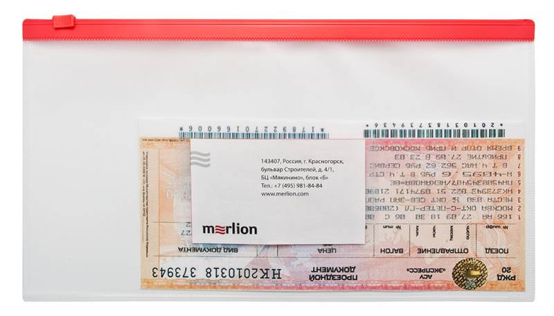 Папка на молнии ZIP Бюрократ -BPM6ARED полипропилен 0.15мм карм.для визит. цвет молнии красный Travel формат (продается кратно 12 шт.)