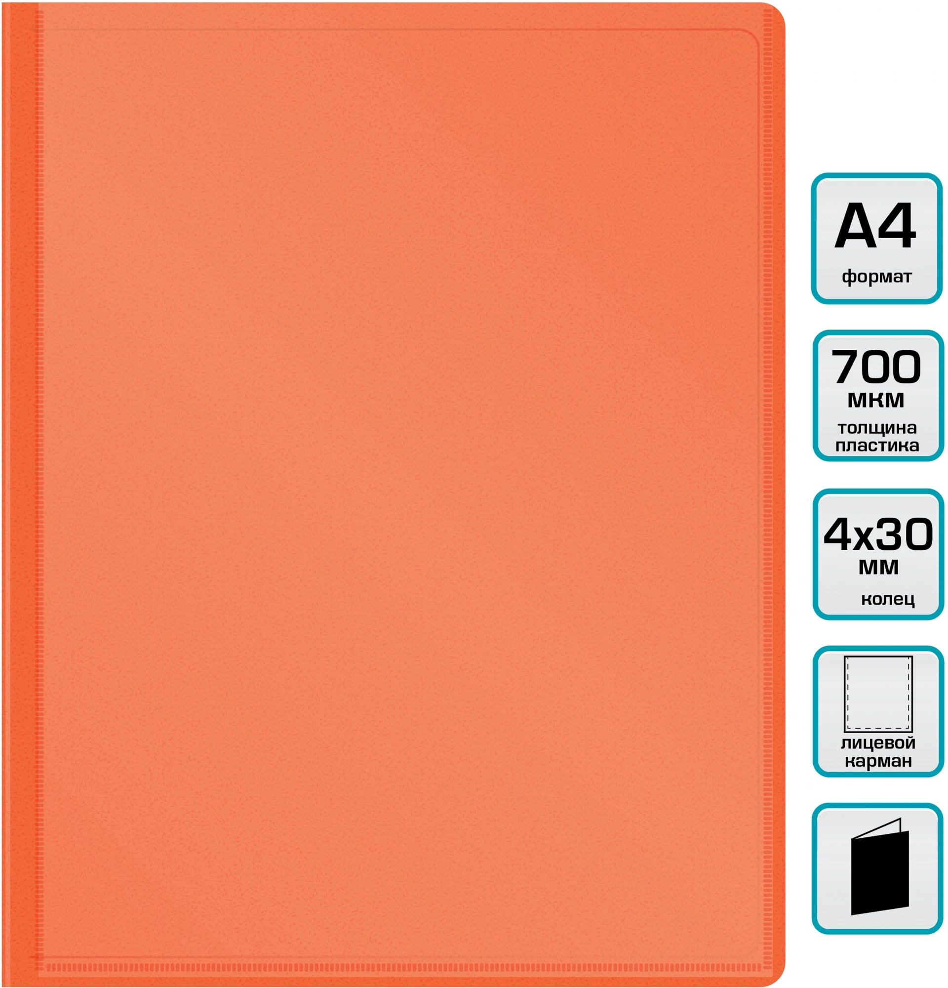 Папка панорама на 4-х кольцах Бюрократ Double Neon DNE0740/ 4ROR A4 пластик 0.7мм кор.40мм карм.на лиц.стор. оранжевый (продается кратно 14 шт.)