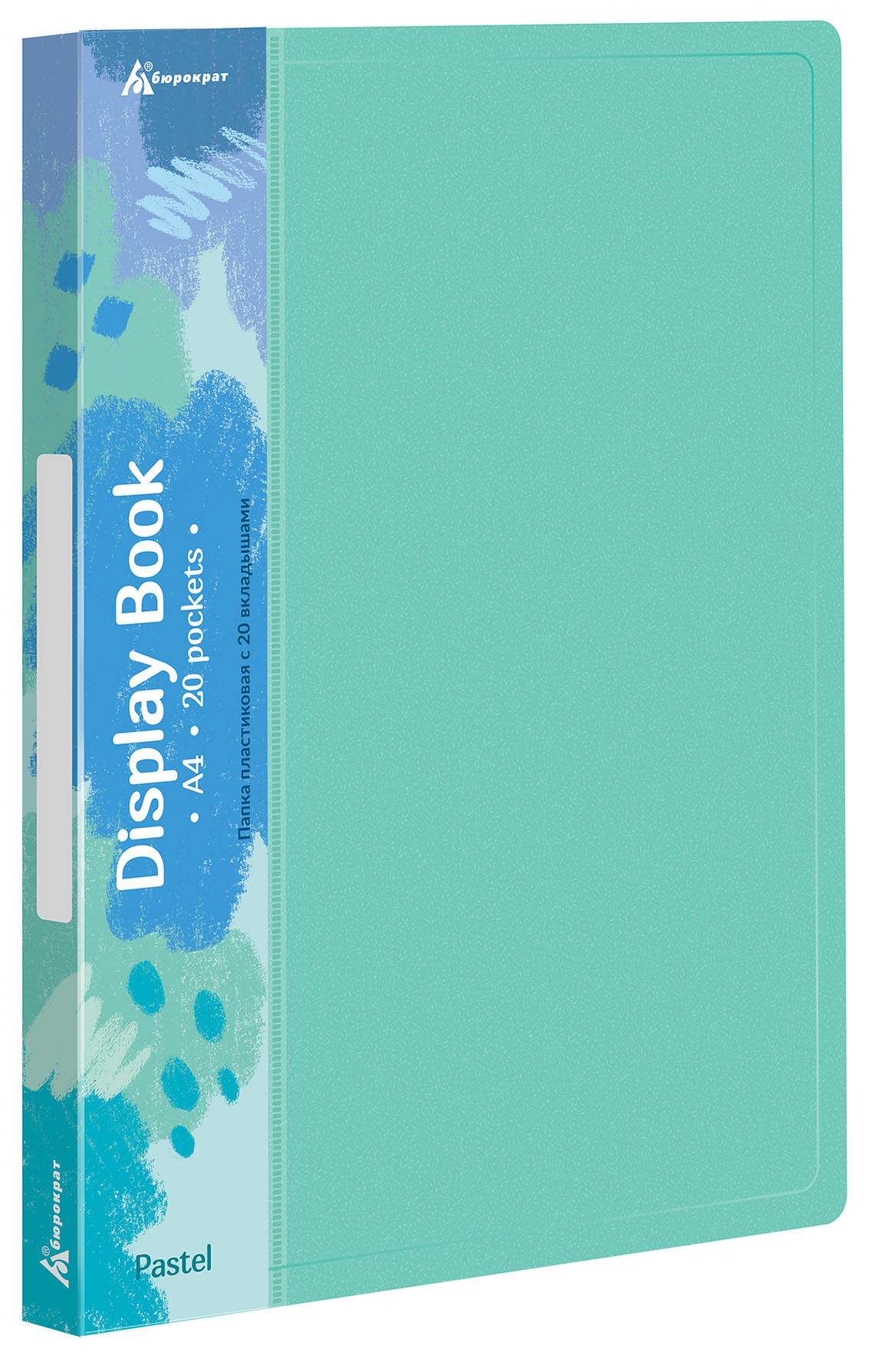 Папка с 20 прозр.вклад. Бюрократ Pastel PAST20GRN A4 пластик 0.5мм торц.карм с бум. встав мятный (продается кратно 20 шт.)