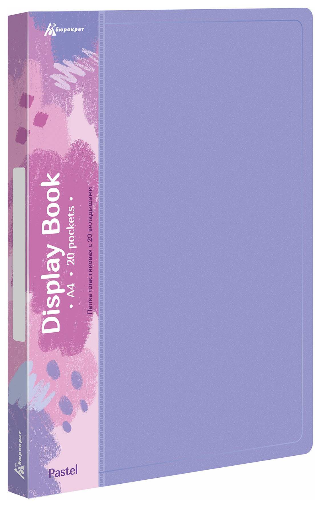 Папка с 20 прозр.вклад. Бюрократ Pastel PAST20VIO A4 пластик 0.5мм торц.карм с бум. встав фиолетовый (продается кратно 20 шт.)