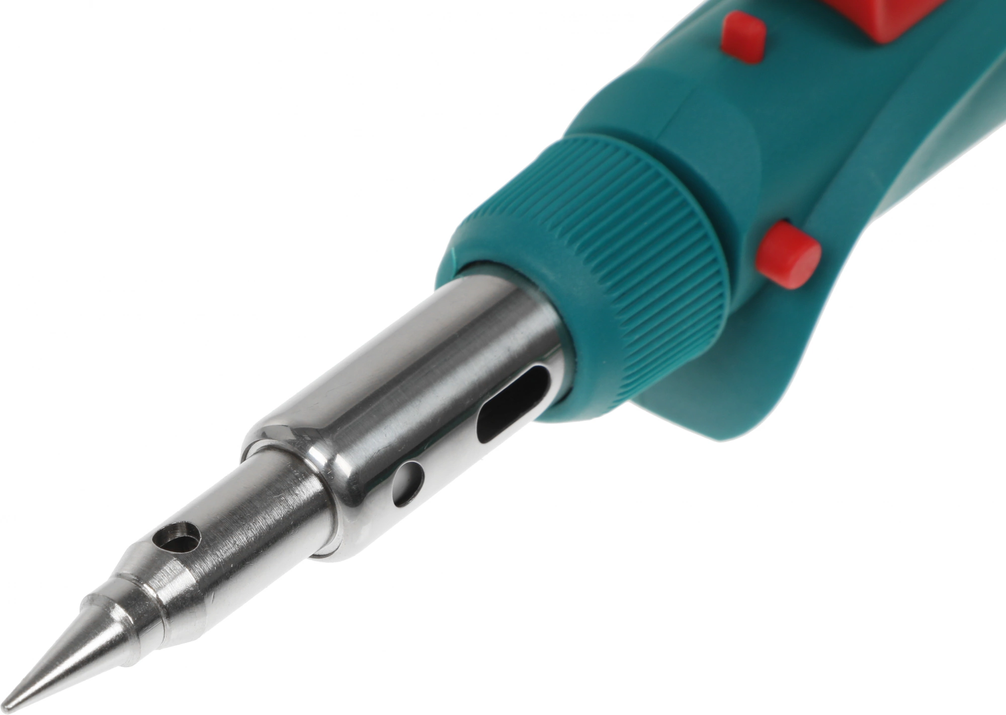 Топливо пропан-бутан. Работа от одной заправки 90 мин. Пьезоподжиг. Темп-ра нагрева жала до 450°С. Темп-ра в режиме " термофен" до 600°С. Температура пламени до 1300°С.