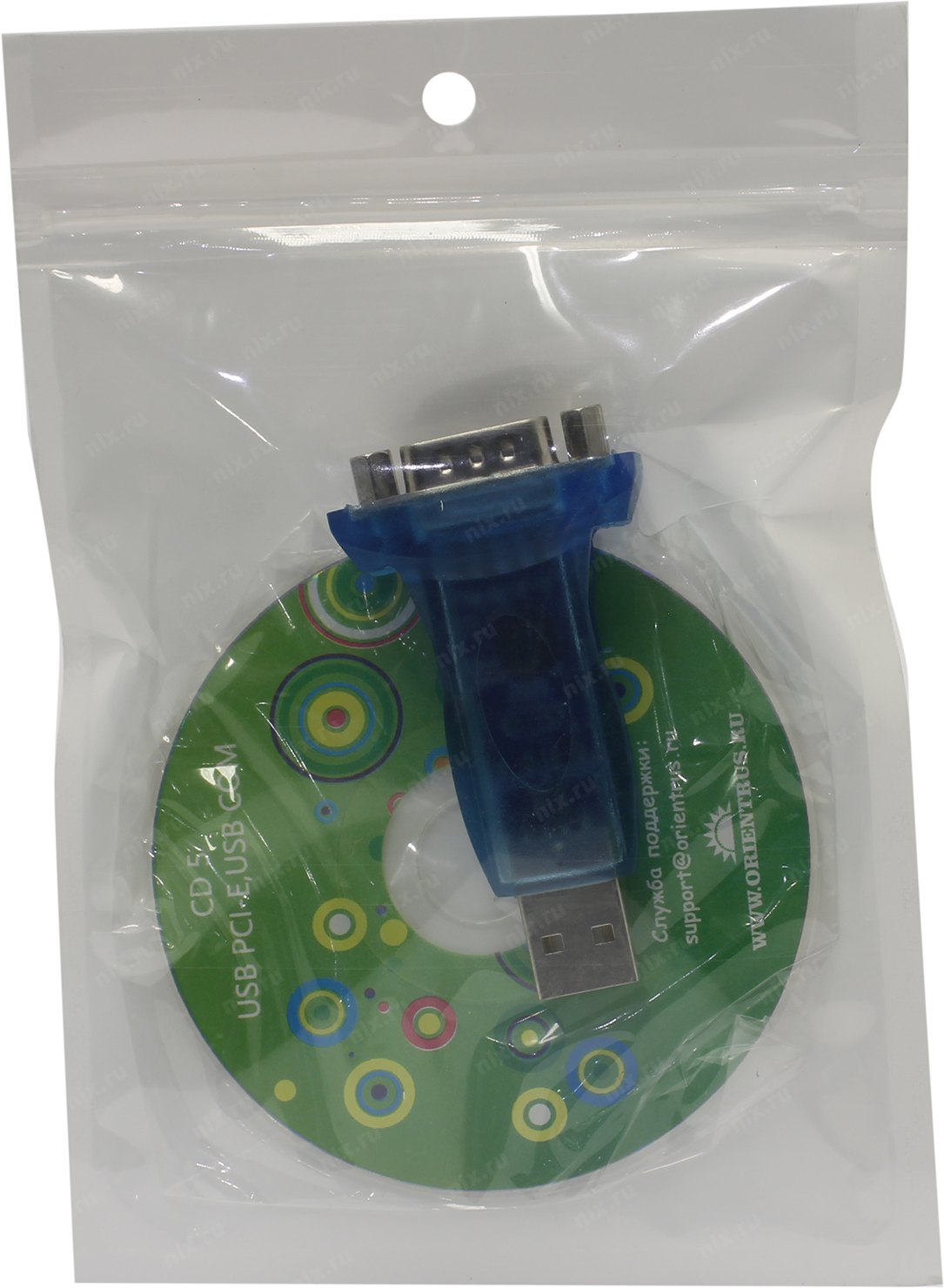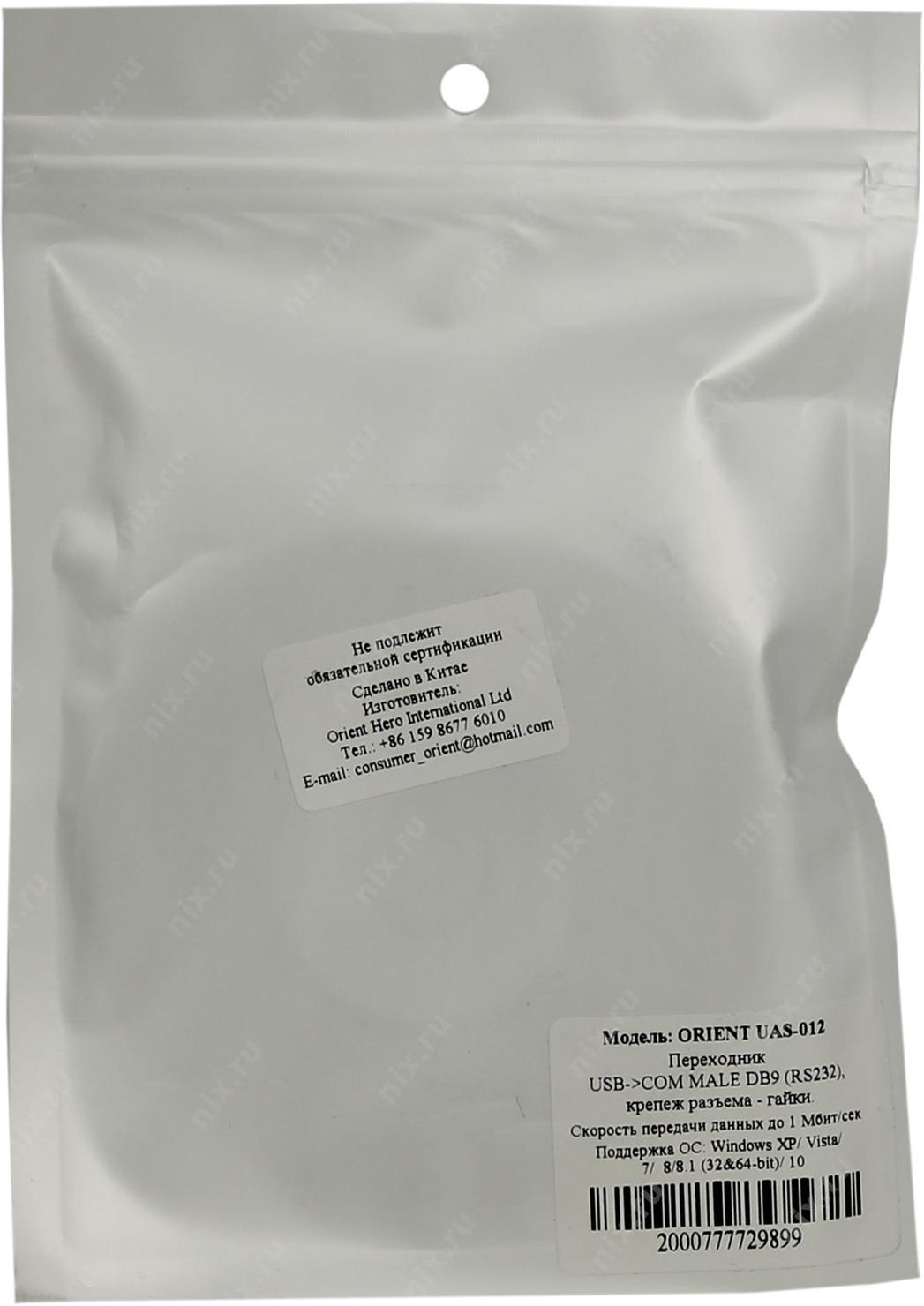 Переходник ORIENT Адаптер UAS-012, USB Am to RS232 DB9M (WCH CH340, поддерж.Win 8.x/10), крепеж разъема - гайки