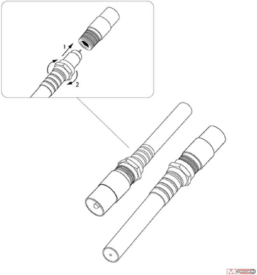 для подключения эфирного, спутникового и кабельного телевидения с помощью радиочастотного кабеля волновым сопротивлением 50 или 75 Ом