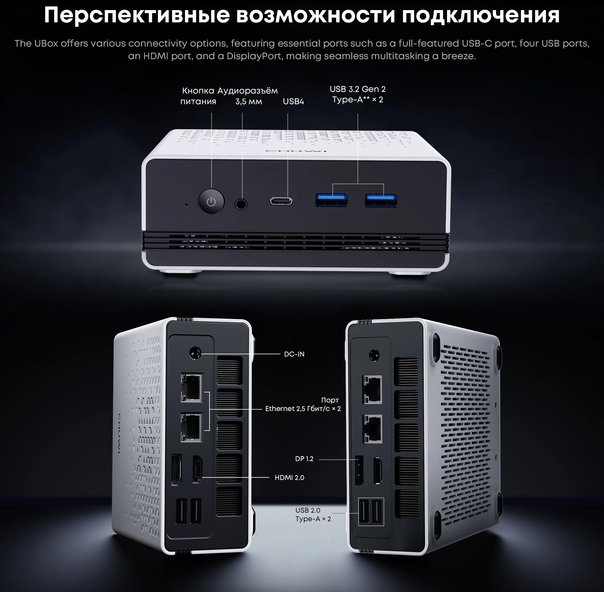 ПК Мини Chuwi UBox Ryzen 5 7430U (4.3) 16Gb SSD512Gb RGr Windows 11 Pro 2x2.5GbitEth WiFi BT 90W белый/ черный