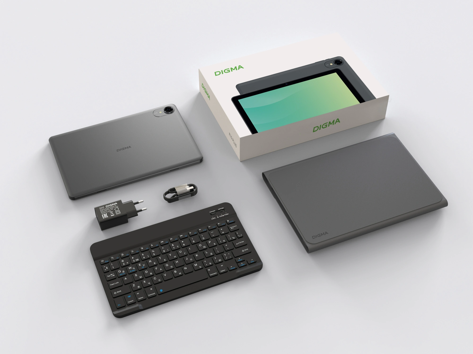Сетевой адаптер питания; USB-C кабель; скрепка для извлечения SIM-карты; защитный чехол; клавиатура