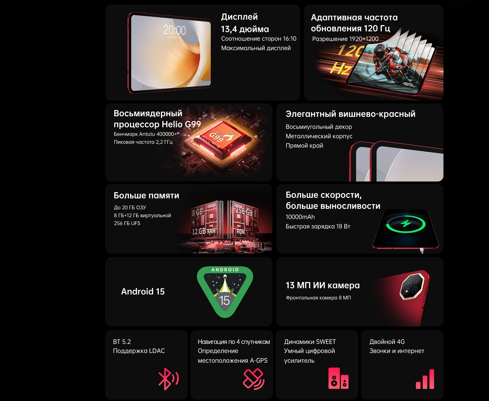 Планшет Teclast T65 Plus Premium set G99 (2.2) 8C RAM8Gb ROM256Gb 13.4" IPS 1920x1200 4G Android 15 красный 13Mpix 8Mpix BT WiFi microSD 1Tb 10000mAh 32hr 1747210