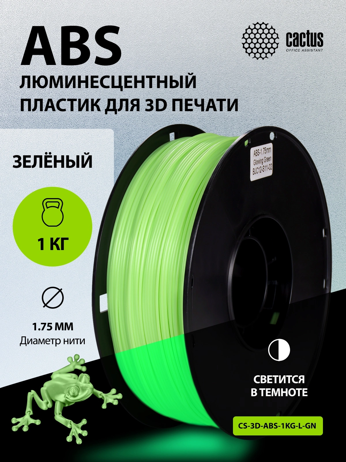 Пластик для принтера 3D Cactus CS-3D-ABS-1KG-L-GN ABS LUMINOUS d1.75мм 1кг 1цв.