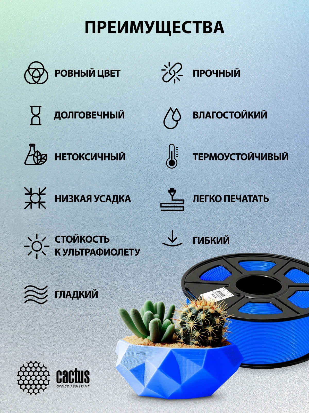 Пластик для принтера 3D Cactus CS-3D-PETG-1KG-BLUE PETG d1.75мм 1кг L316м 1цв.