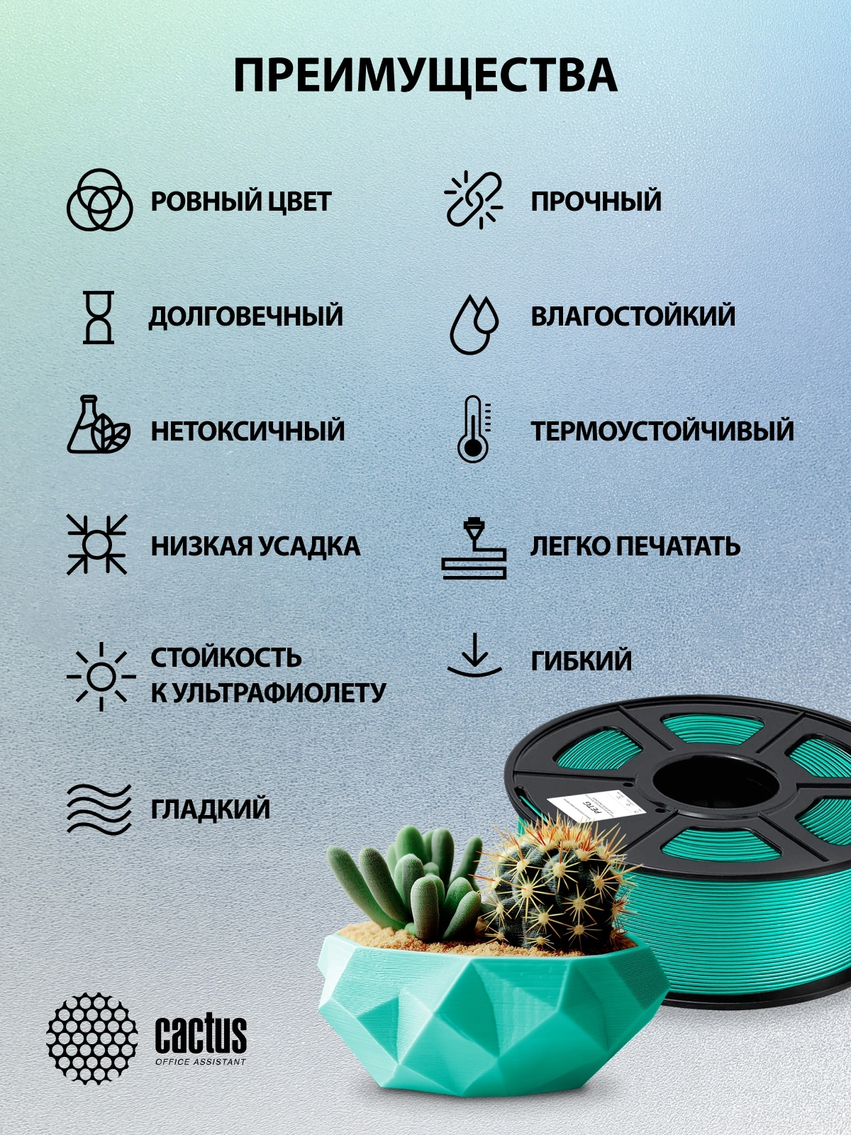 Пластик для принтера 3D Cactus CS-3D-PETG-1KG-DKGN PETG d1.75мм 1кг L316м 1цв.