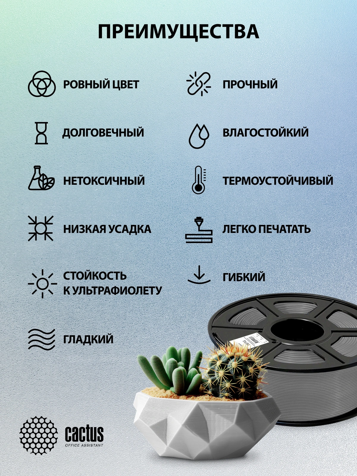 Пластик для принтера 3D Cactus CS-3D-PETG-1KG-GREY PETG d1.75мм 1кг L316м 1цв.
