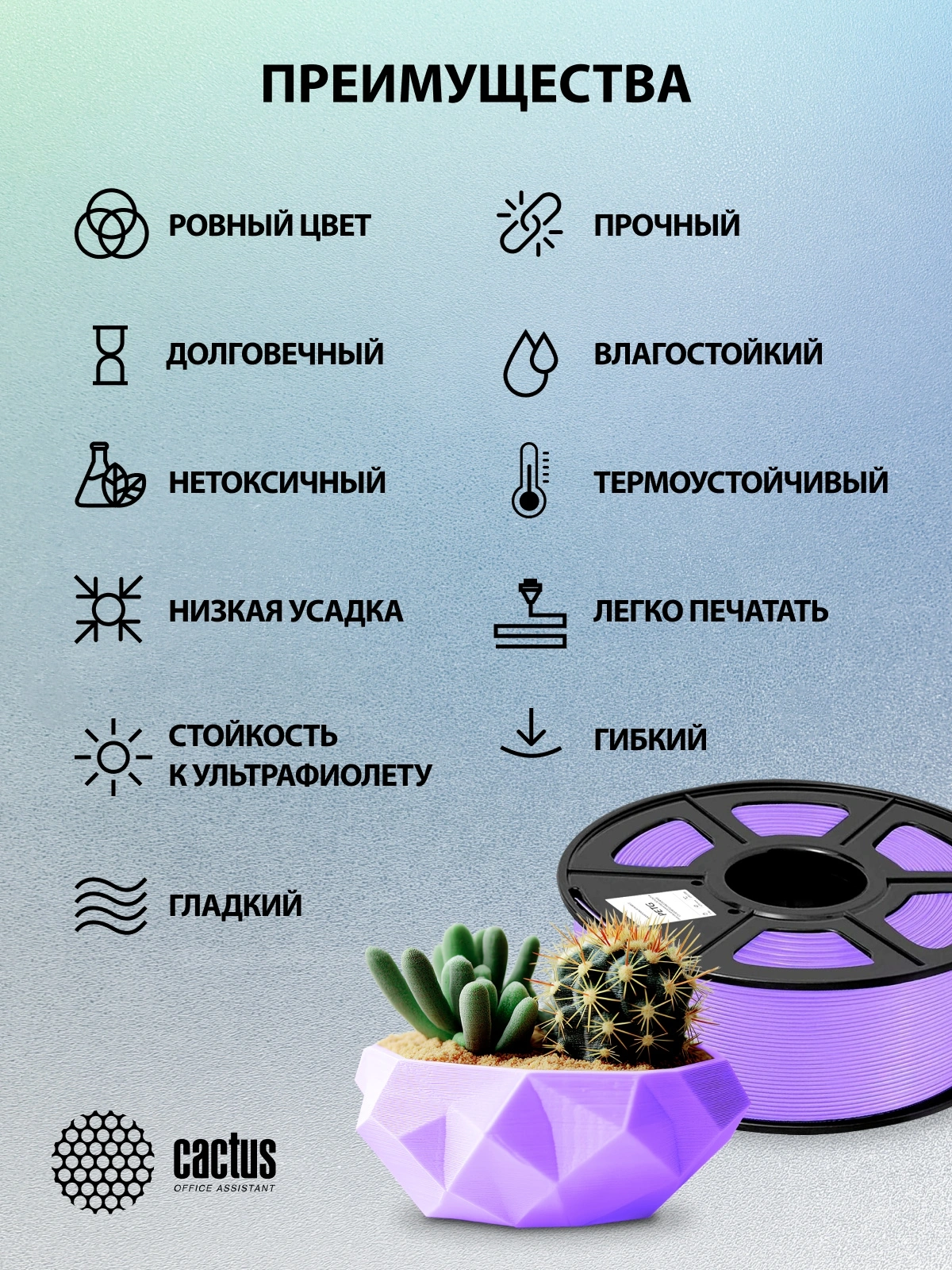 Пластик для принтера 3D Cactus CS-3D-PETG-1KG-PURPLE PETG d1.75мм 1кг L316м 1цв.