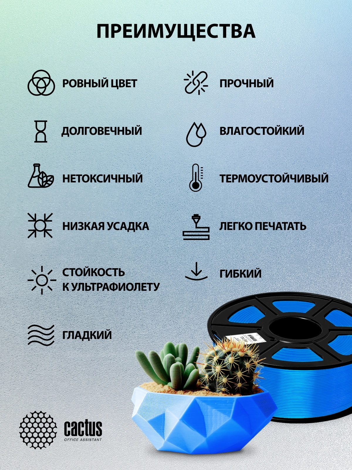 Пластик для принтера 3D Cactus CS-3D-PETG-1KG-T-BLUE PETG d1.75мм 1кг L316м 1цв.