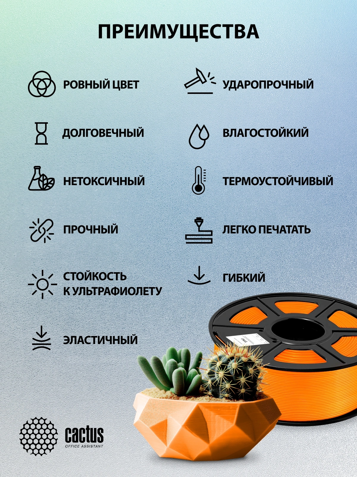 Пластик для принтера 3D Cactus CS-3D-TPU-0.8KG-ORANGE TPU d1.75мм 0.8кг L336м 1цв.