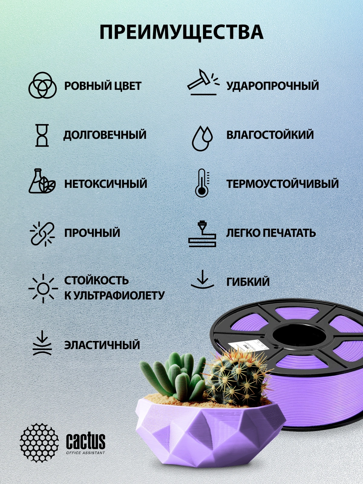 Пластик для принтера 3D Cactus CS-3D-TPU-0.8KG-PURPLE TPU d1.75мм 0.8кг L336м 1цв.