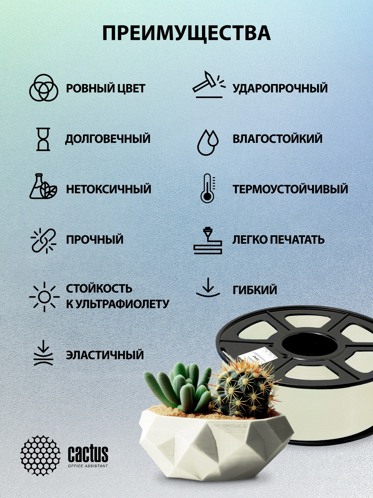 Пластик для принтера 3D Cactus CS-3D-TPU-0.8KG-TRANSP TPU d1.75мм 0.8кг L336м 1цв.