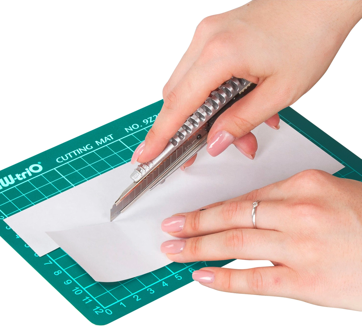 Подкладка для точной резки формата А5. Пластиковая основа с самовосстанавливающейся поверхностью. Размер 22, 5x15x0.3 см. Сантиметровая шкала.