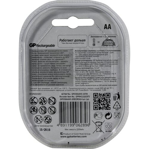 Аккумулятор GP 230AAHC-2DECRC4 40/400 (4 шт. в уп-ке) аккумулятор [GP230AAHC-2DECRC4]