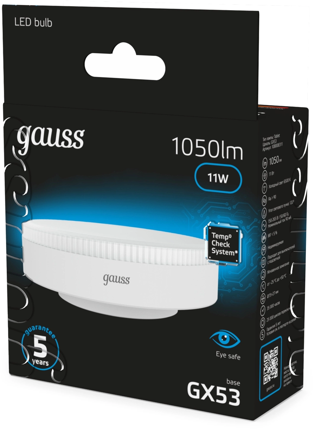 Лампа светодиодная Gauss 108008311 11Вт цок.:GX53 таблетка 220B св.свеч.бел.хол. (упак.:10шт)